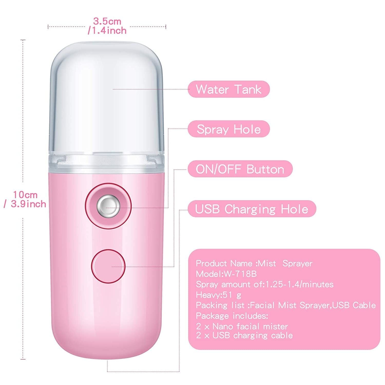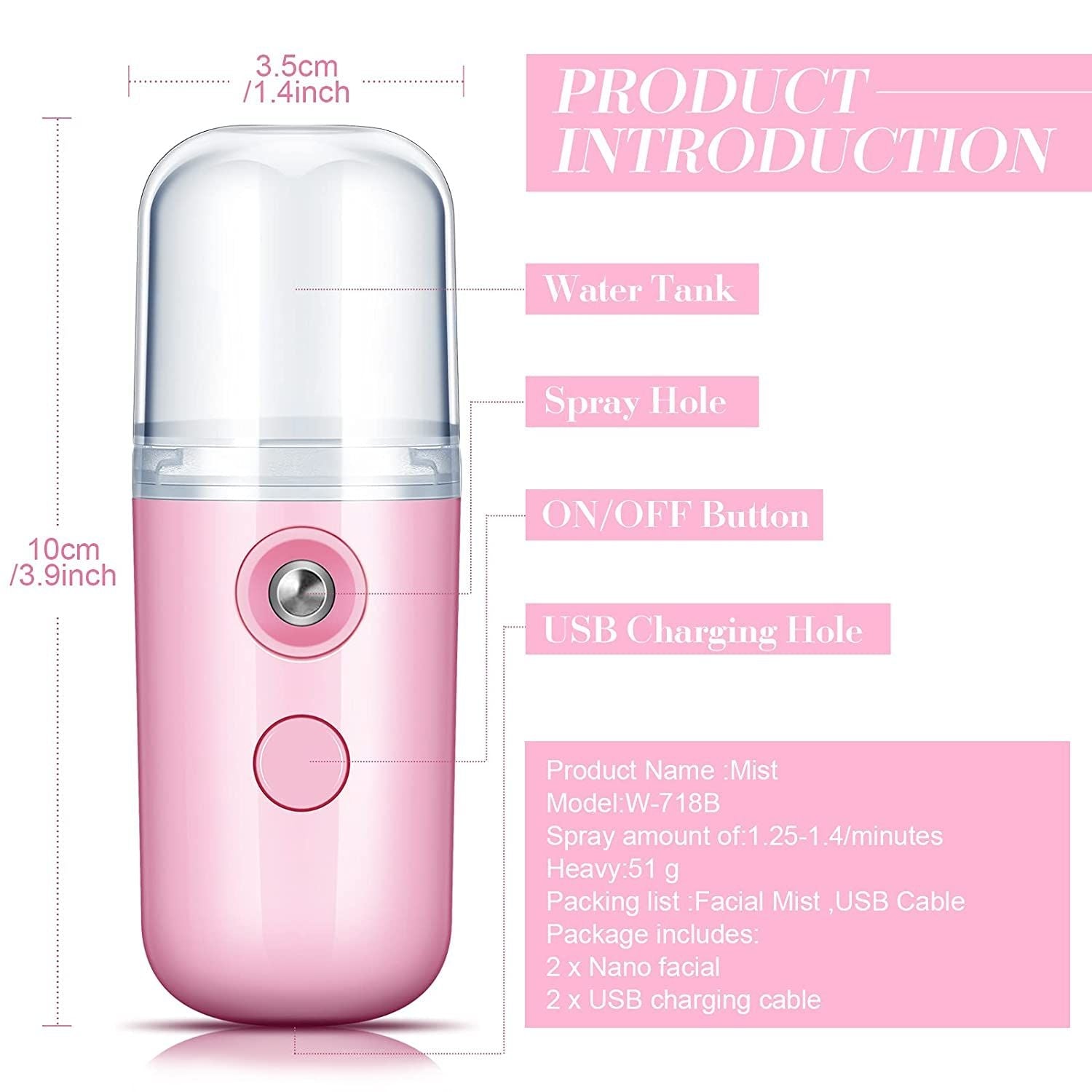 Portable Nano Facial Mist - Handy Steamer for Hydrating and Mist Hand Eyelash Extensions - 30ml USB Mist Handy Steamer for Facial Hydrating