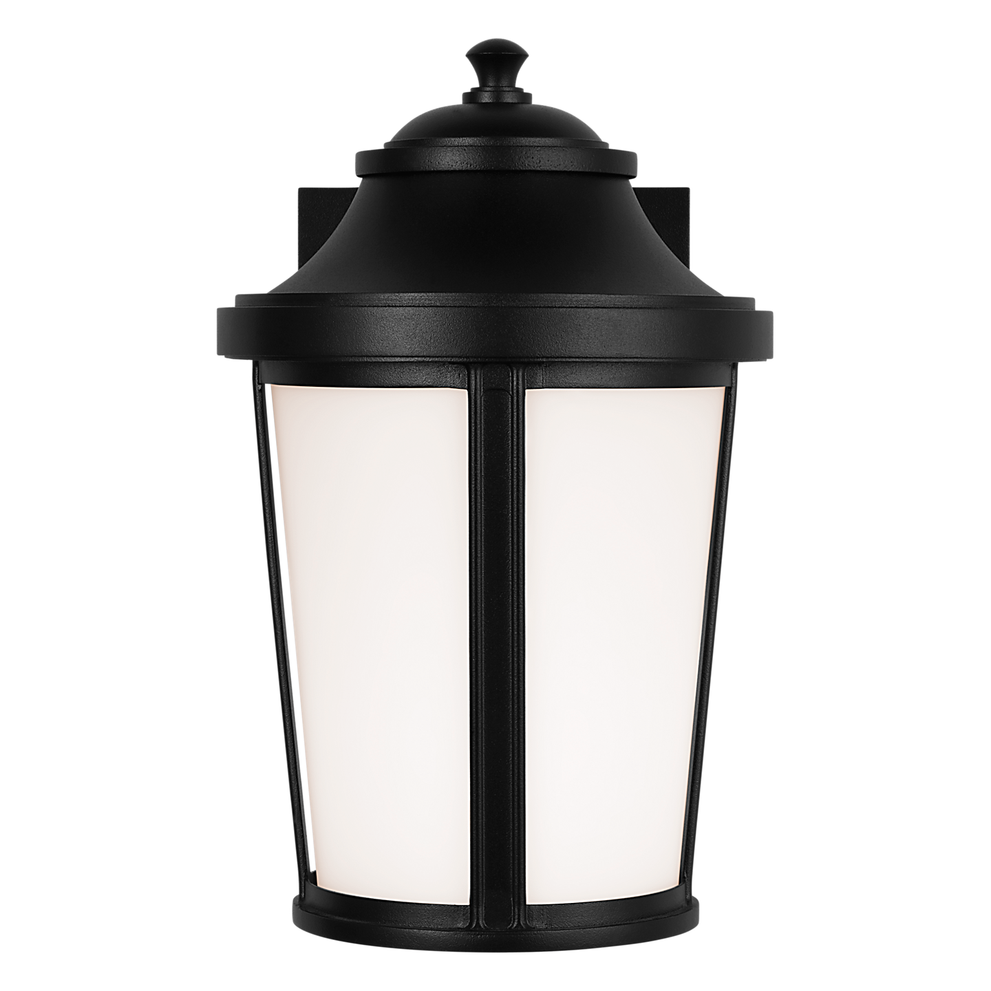 Portola's Small Lantern refines the traditional lantern with softened contours and thoughtful flexibility. Etched white glass panels diffuse the light for a calm, ambient glow, while bold framing in a Textured Black finish provides structure and contrast. Available with a square backplate, Portola adapts easily to a range of architectural styles—from classic to transitional. Wet-rated for exterior use, the series brings quiet elegance to porches, entryways, and outdoor living spaces.