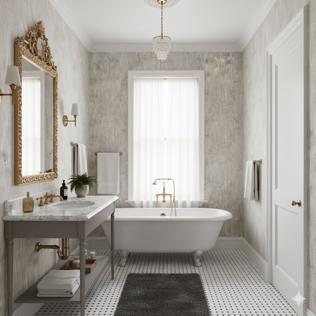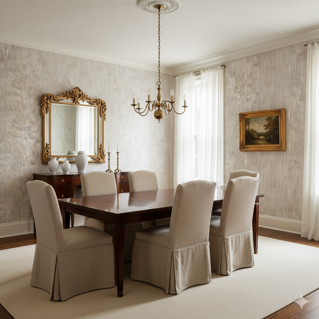 Thin, feathery white lines stretch upward across a taupe-gray background, resembling tall prairie grasses swaying in a late summer breeze. The layered transparency of the strokes creates depth and movement, while the neutral tones keep it versatile. This design is an excellent choice for farmhouse kitchens, rustic entryways, or spa-inspired bathrooms where a calming natural backdrop is desired. It works beautifully with raw wood beams, stone floors, or matte black fixtures.