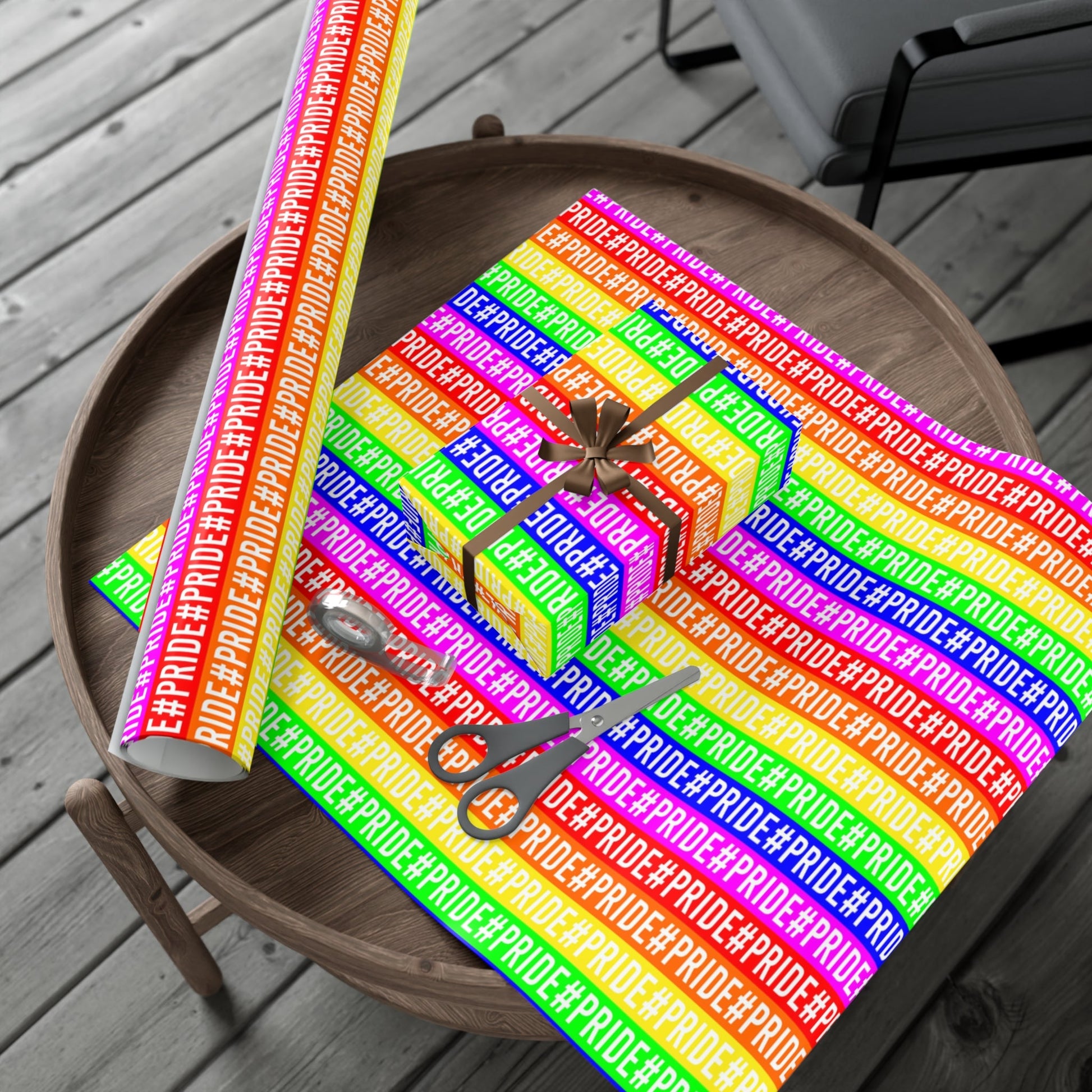 Make any gift bring an even wider smile to the receiver with our awesome pride wrapping paper. Available in two paper finishes (satin, matte).  Each sheet is printed using GreenGuard UL Certified inks and the blank paper is made in the USA under strict quality control.  Hope you love our pride gift wrap as much as we do.