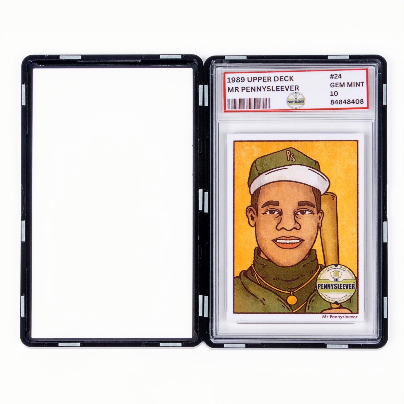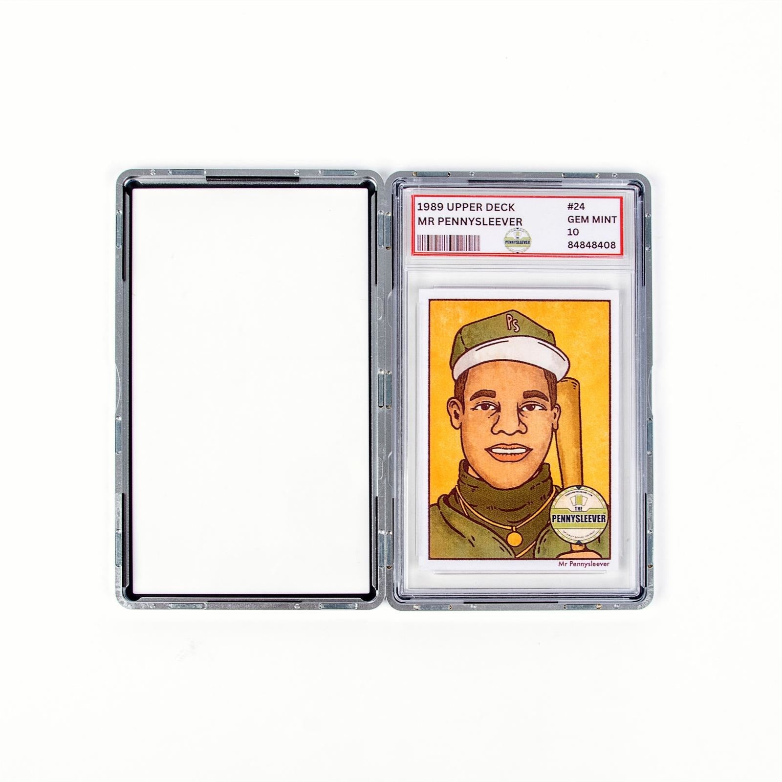 Don't your best graded cards deserve the best case? The aluminum bumper from The Pennysleever provides unparalleled looks and an extra degree of safety. With stylish aluminum edges and a clear window, your cards have never looked better.