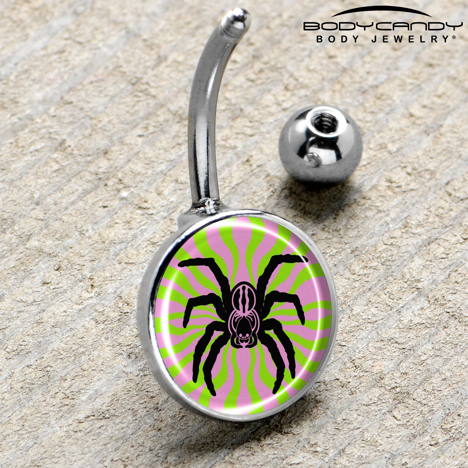 Hypoallergenic belly ring for sensitive skinPsychedelic Spider Belly Ring