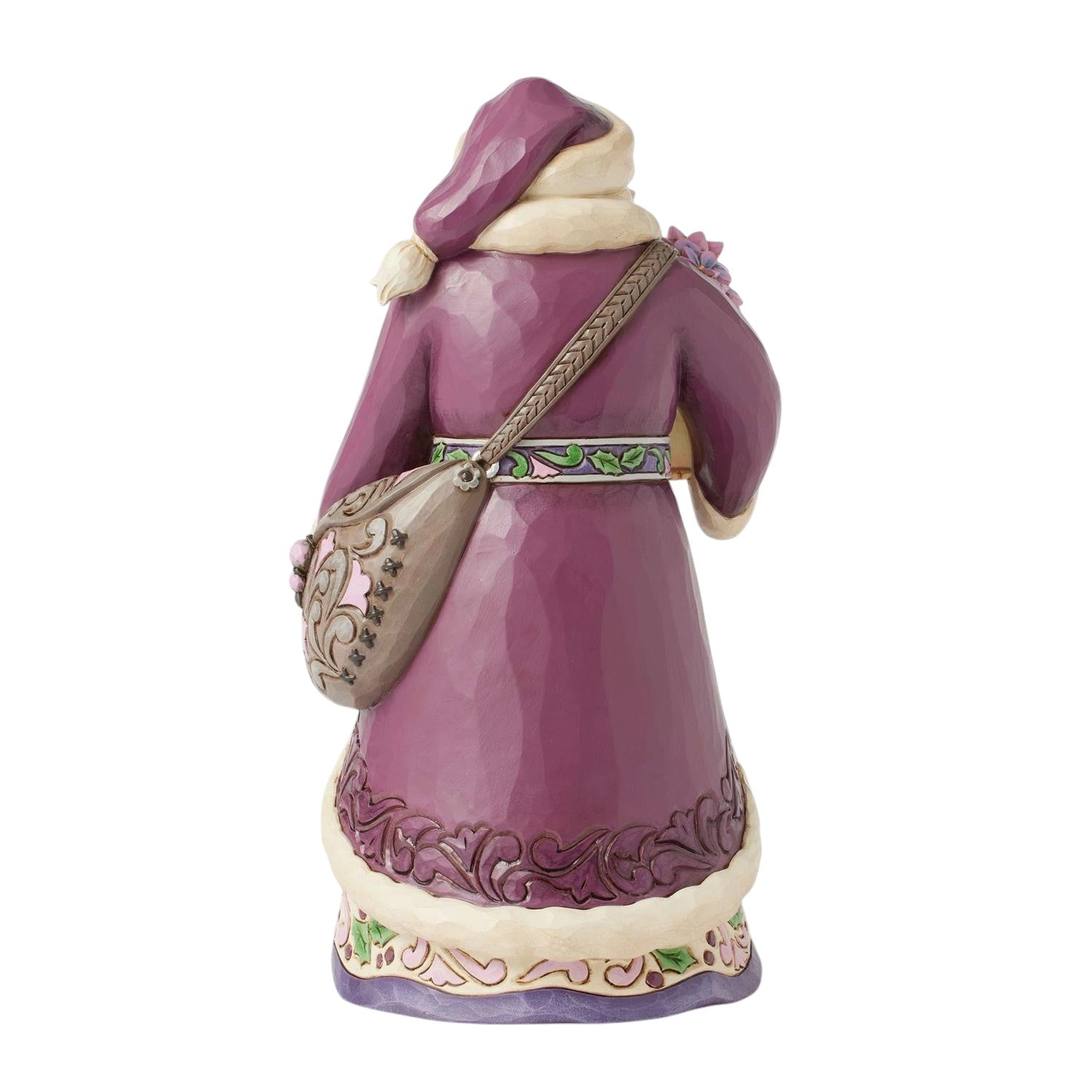 Celebrate the season in style with Jim Shore's captivating Royal Holiday Cheer Purple Poinsettia Santa! This charming Santa figure stands 10.5 inches tall, showcasing a beautiful blend of vibrant purples and intricate floral designs that capture the magic of the holidays. Holding a lovely bouquet of poinsettias—traditional symbols of Christmas joy—this figure radiates warmth and cheer, making it a delightful addition to your holiday décor.