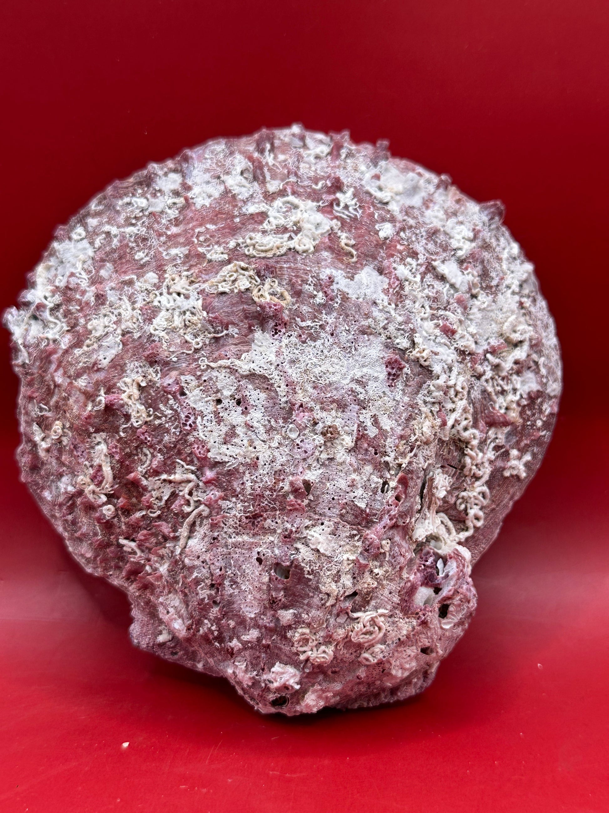 - Natural deep purple outer surface with ocean encrustations