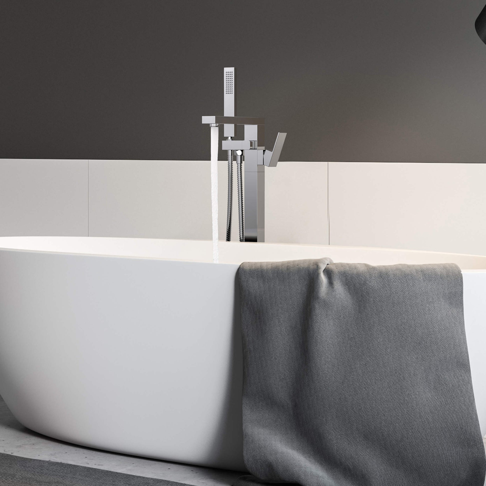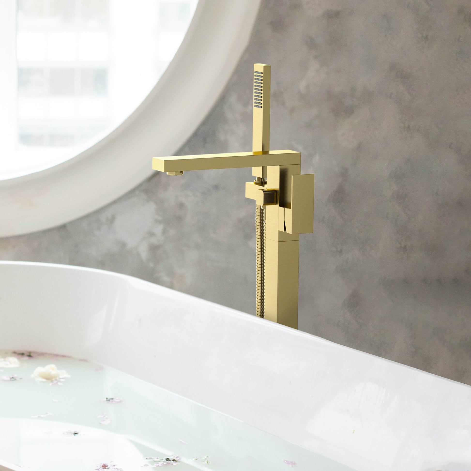 With clean minimalist lines and exceptional ergonomics, this Quadra tub filler embodies the simple elegance of modern design, which makes it the perfect choice for your free-standing bathtub.It features a swivel gooseneck spout and brass construction hand shower for a longer reach and extended coverage.