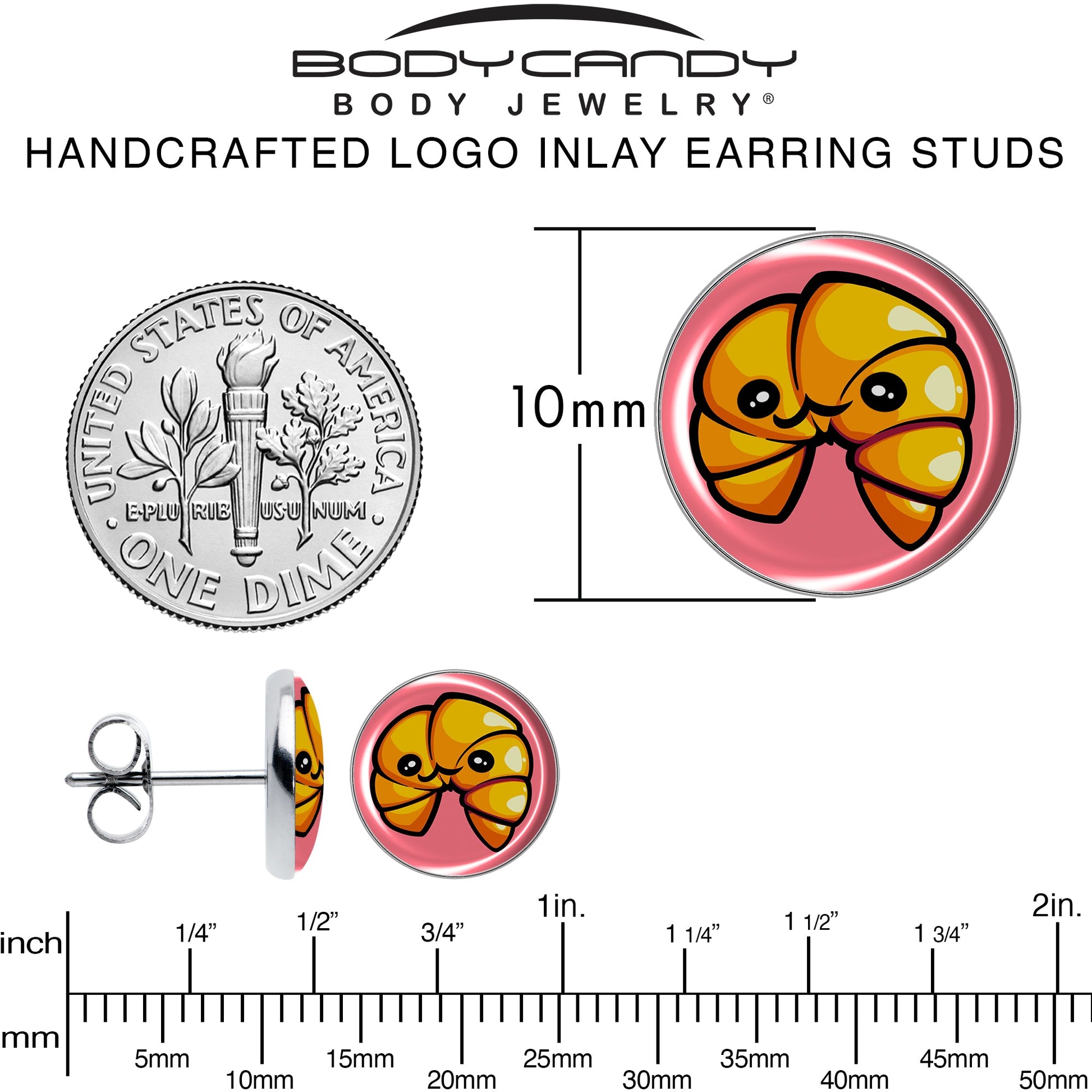 Approximately 10mm Diameter, Stainless Steel Post with Friction Backs, Pierced Earrings, Logo Inlay, Sold as a Pair