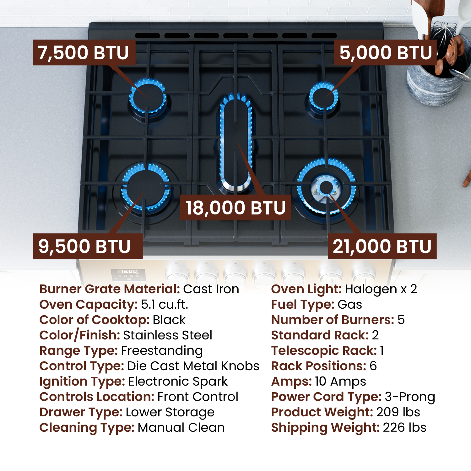 Burner - Center | 18000 Btu | Number of Burners | 5 Burners |