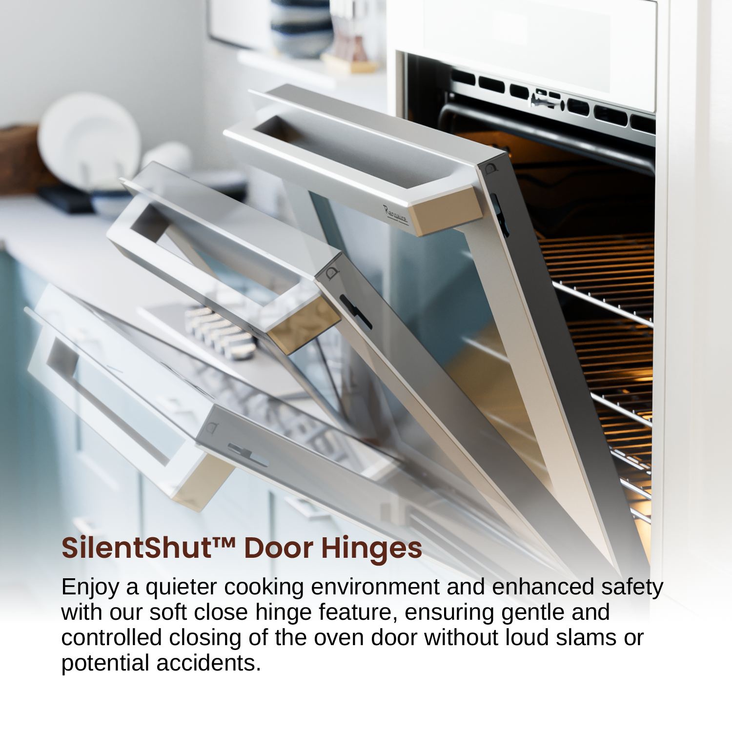 Enjoy a quieter cooking environment and enhanced safety with our soft close hinge feature, ensuring gentle and controlled closing of the oven door without loud slams or potential accidents.
