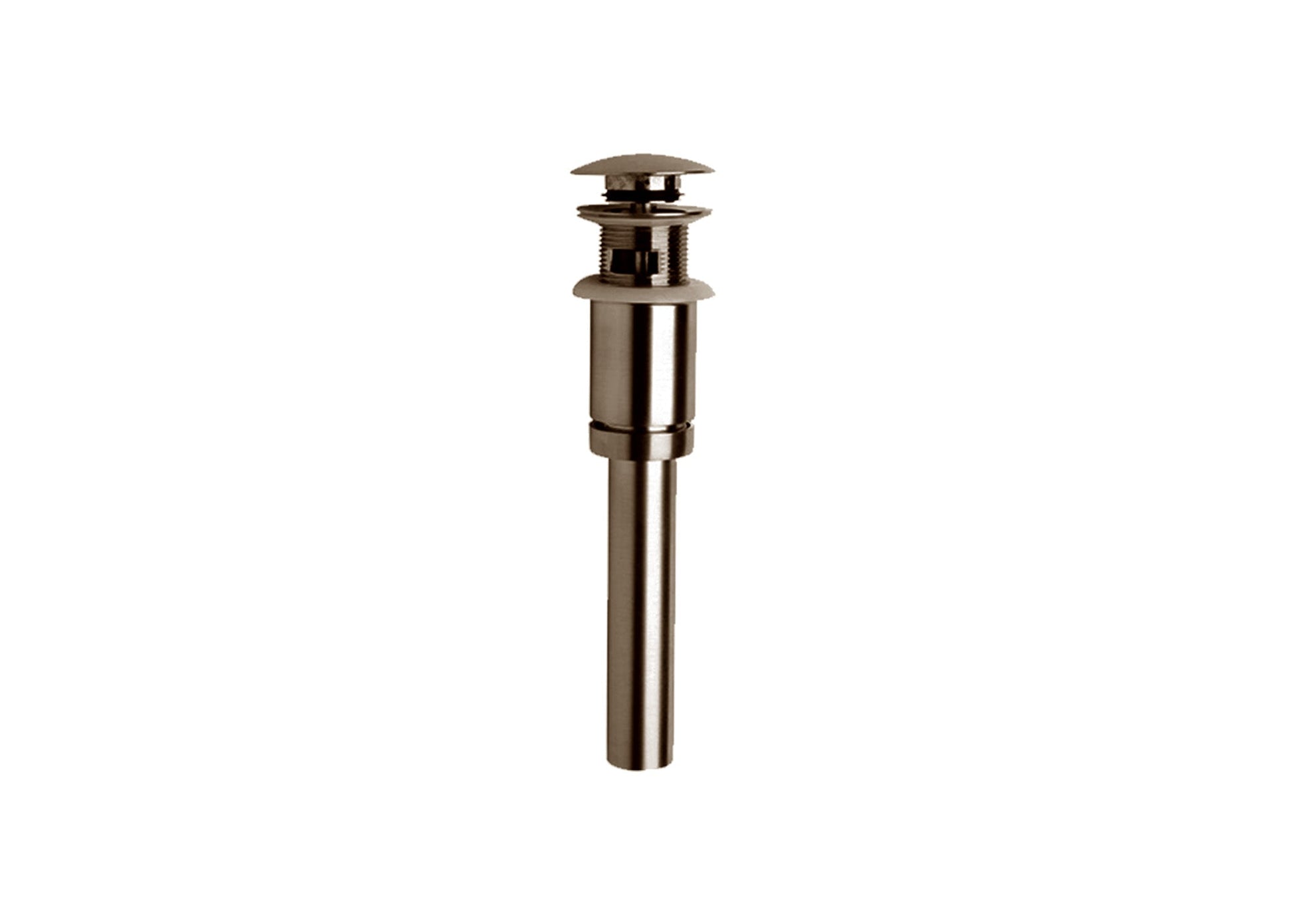 Fits any standard bath drain openingNo Overflow Twist and turn operation Pairs with Elba, Alessandra, Novello, Morgana, Ornellaia, Lucia, Water Harmony, E-Commerce or any square style Collections No lift rods to fail One-Touch open and close operation for easy use Blends with basic round shape bath accessories and faucets Fits all standard bathroom sinks All metal construction for long term durability Silicone Gaskets for long life Tighten in from bottom of sink