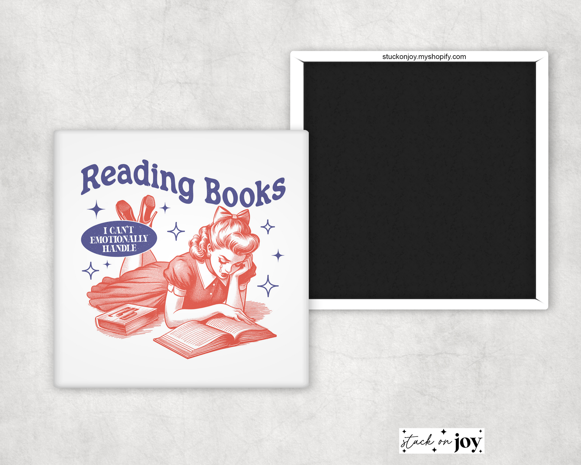 READING BOOKS I CAN'T EMOTIONALLY HANDLE FUNNY 2"x2" MAGNET