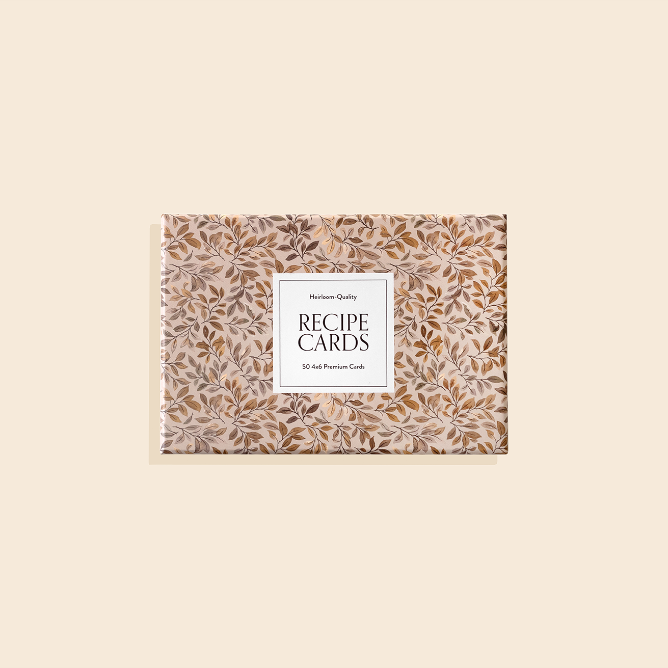 These beautifully designed, 4" x 6" recipe cards from bestselling author Korie Herold feature: - Space to record prep time, serving size, ingredients, and instructions for each dish - 5 different designs in the author's signature style - Sturdy cardstock for long-lasting use Store these cards in your favorite recipe box or pair them with Korie Herold's beautiful recipe journal Around Our Table.