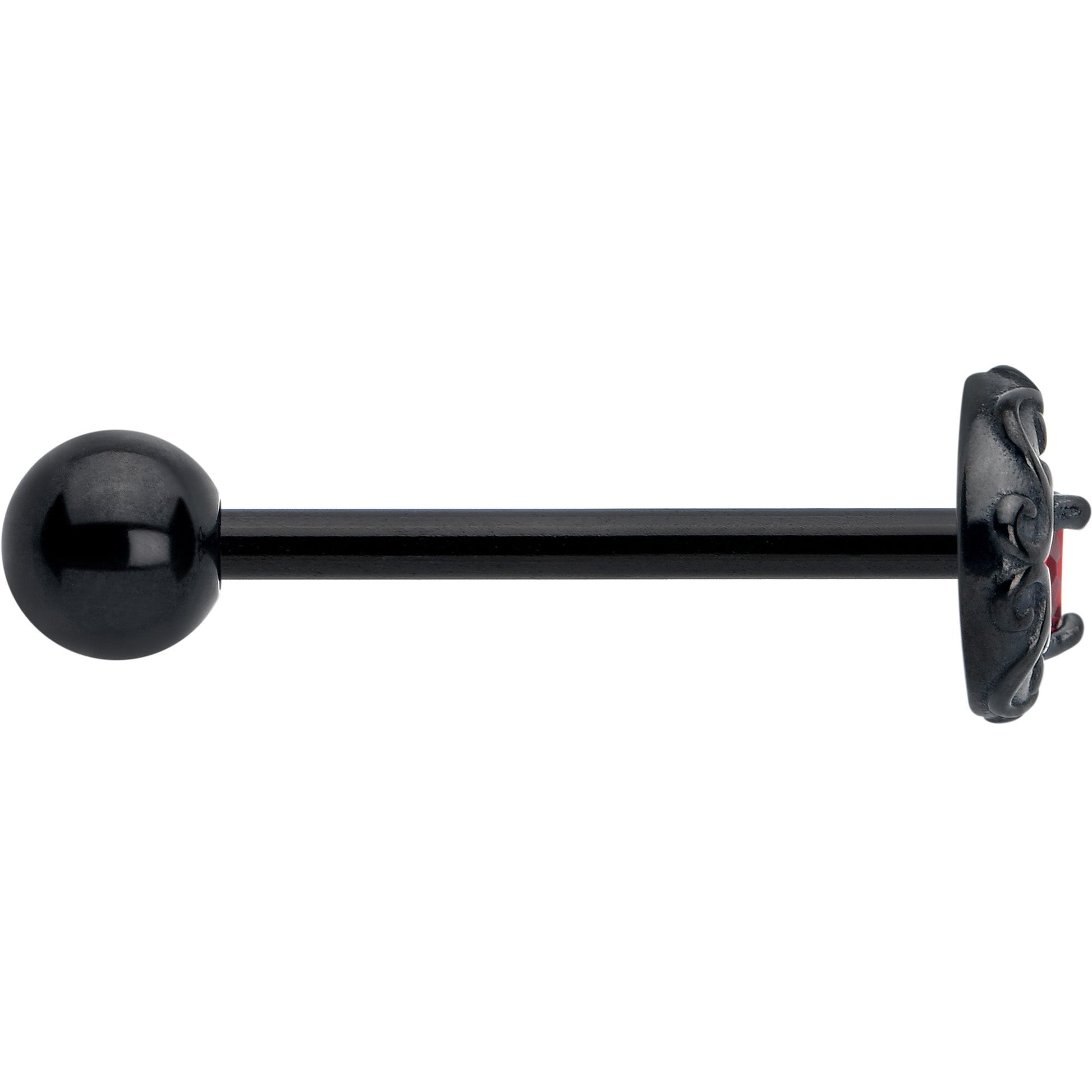 Red CZ Gem Black Scroll Moon Heart Barbell Tongue Ring