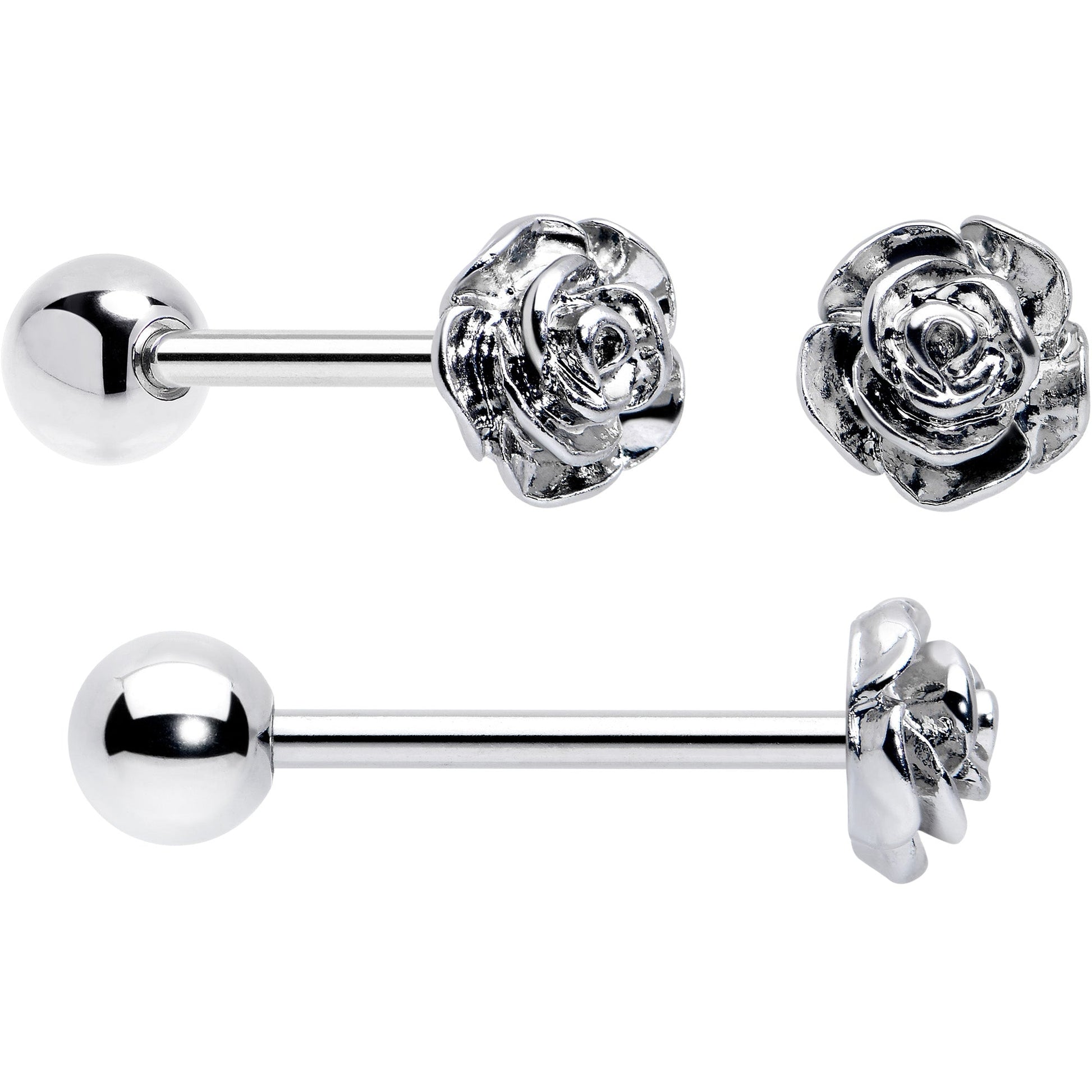 Let your tongue piercing reflect your every mood with this set of 14 gauge tongue rings. All four are made with 5/8 inch 316L surgical grade stainless steel straight barbells. One features a 6mm top ball end that is set with a red cubic zirconia gem. The second one features 6mm red acrylic ball ends for a colorful appearance. The third one features a multidimensional rose charm top end. The fourth one features 6mm sandblasted ball ends for an unconventional look. Get a look for every occasion with this stylish set of tongue piercing jewelry. Sold as a set of four.Specifications