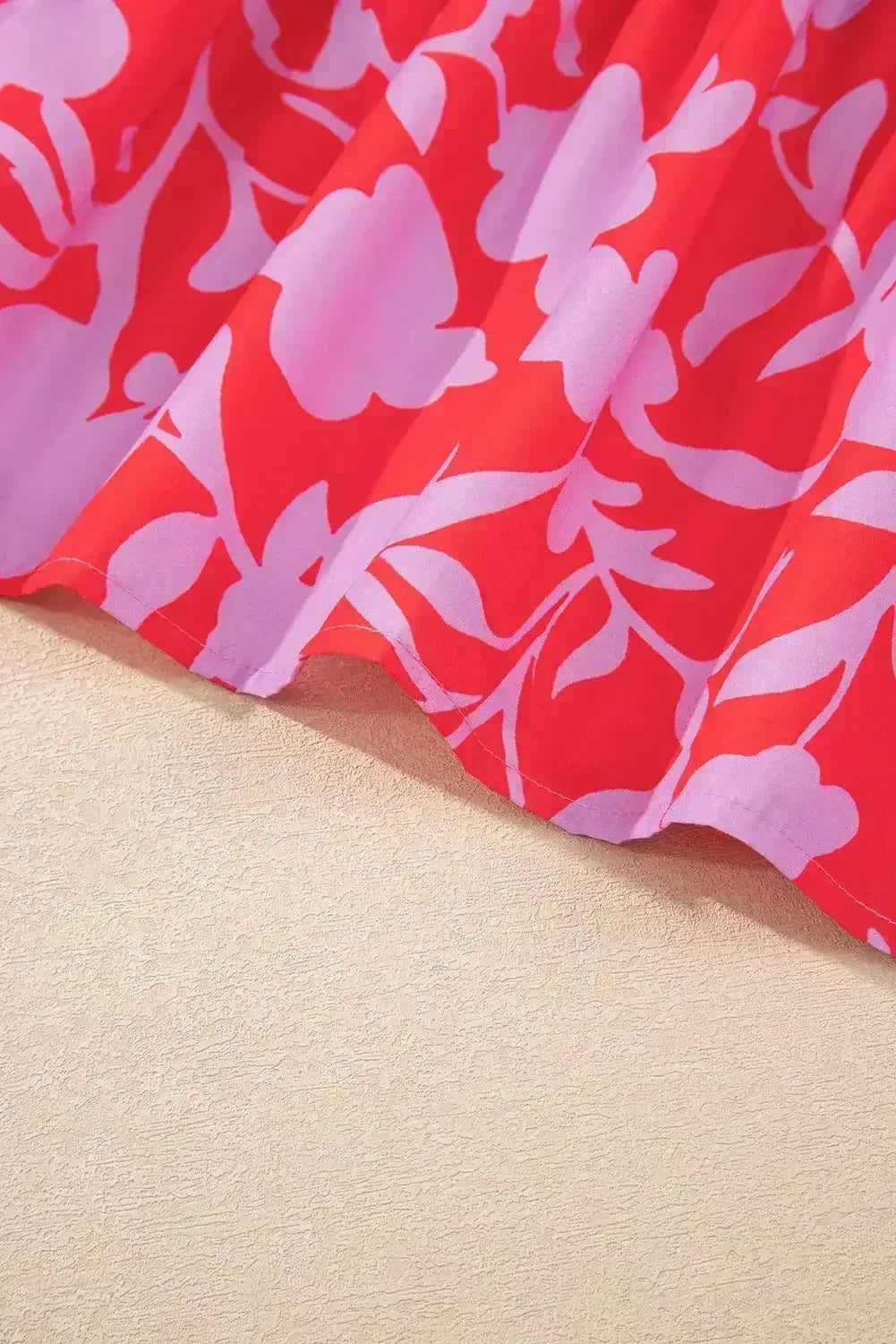 Red Floral 3/4 Sleeve Ruffle Hem Mini Dress