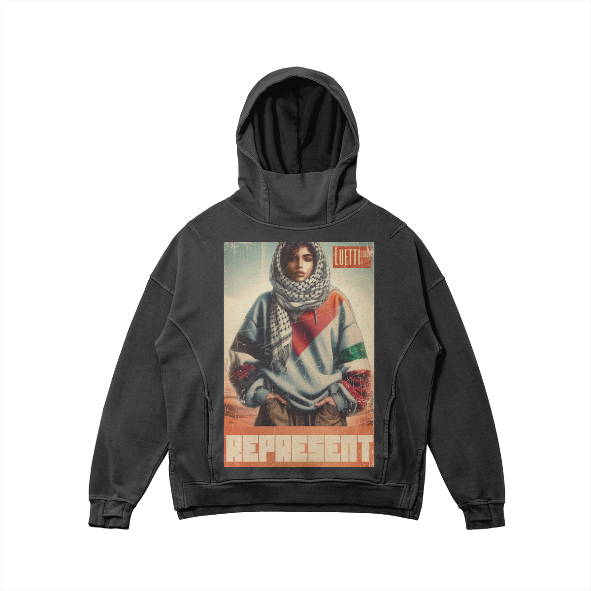 "Represent Palestine" Turtle Neck Hoodie with Thumb Holes