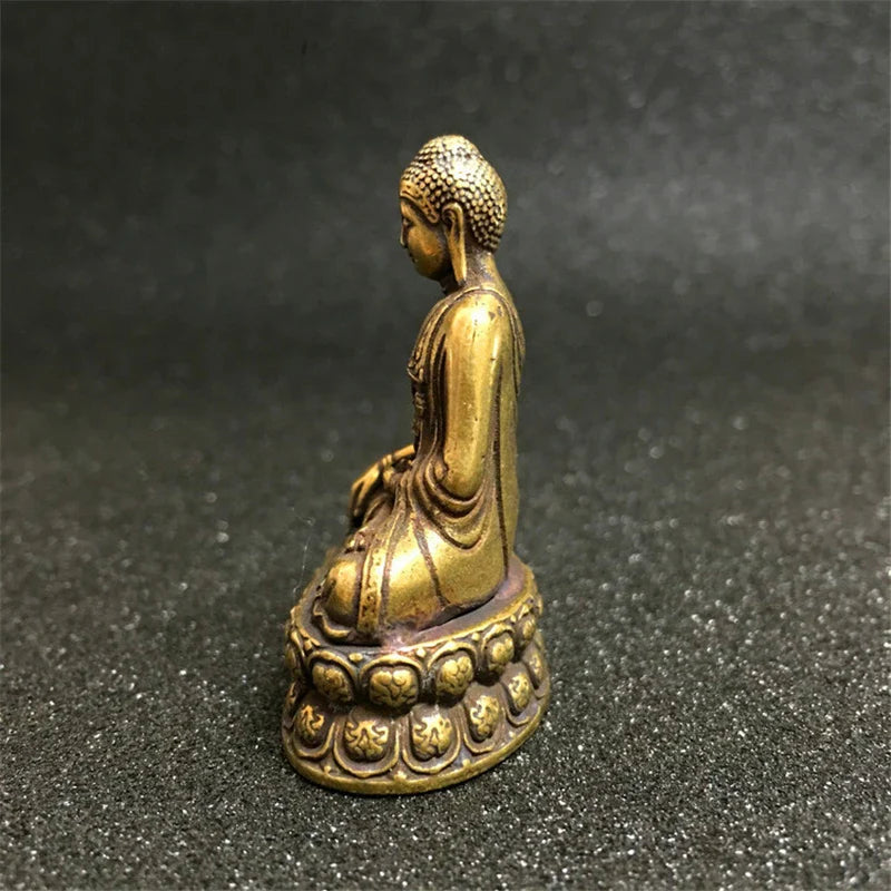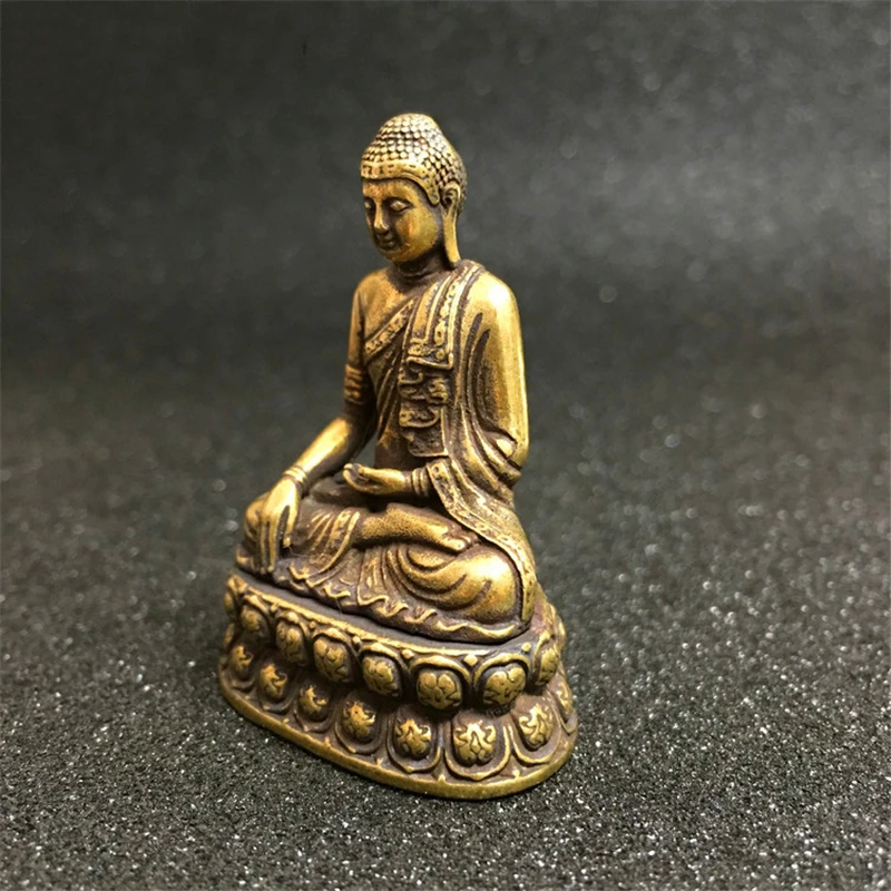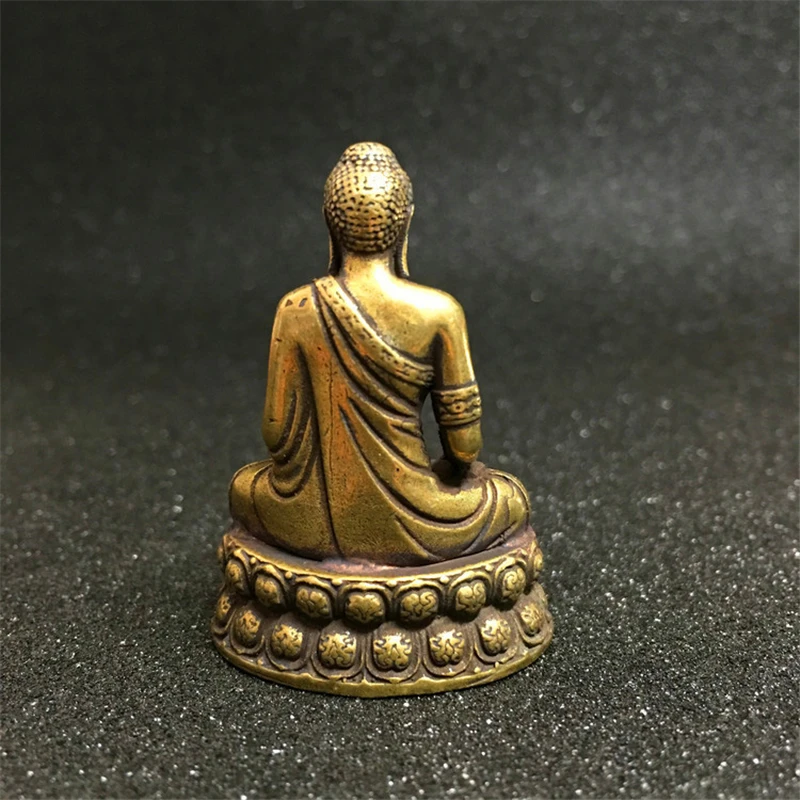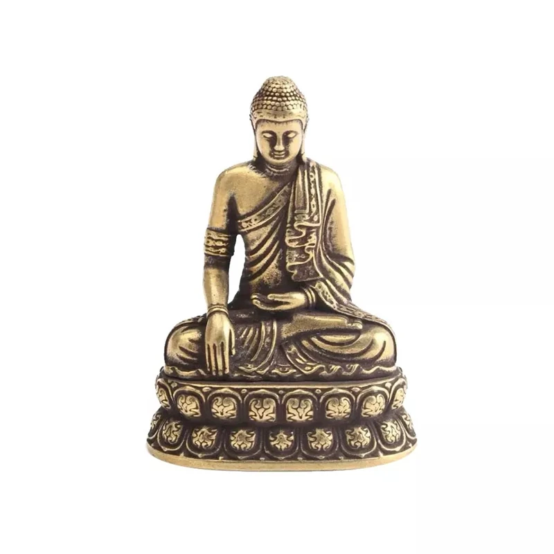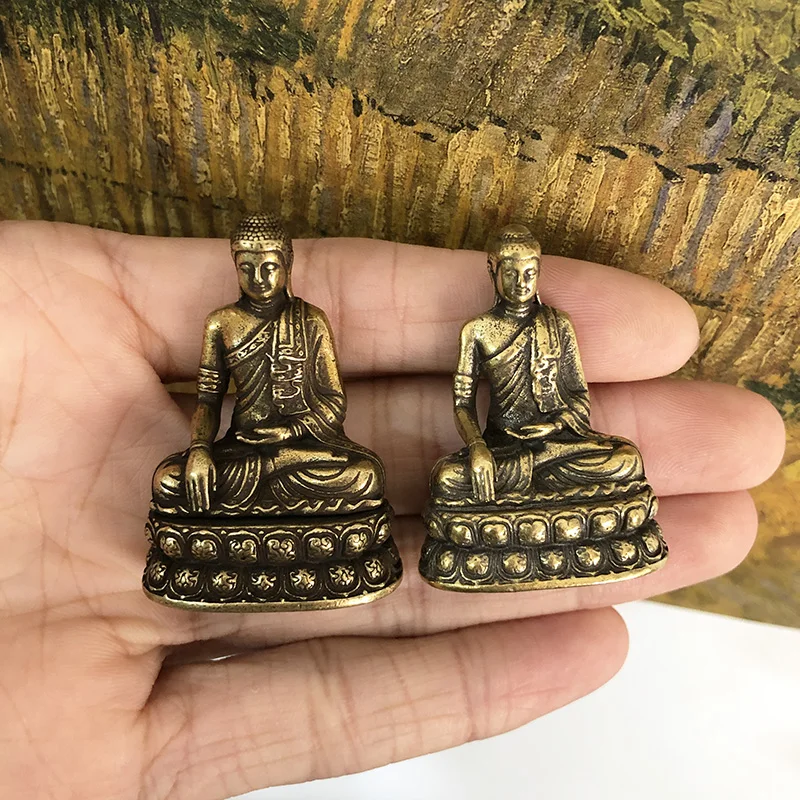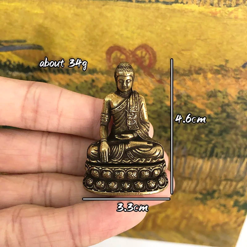 Retro Brass Buddha Sakyamuni Statue Mini Portable Pocket Sitting Buddha Sculpture Home Decor Office Desk Decorations Ornaments