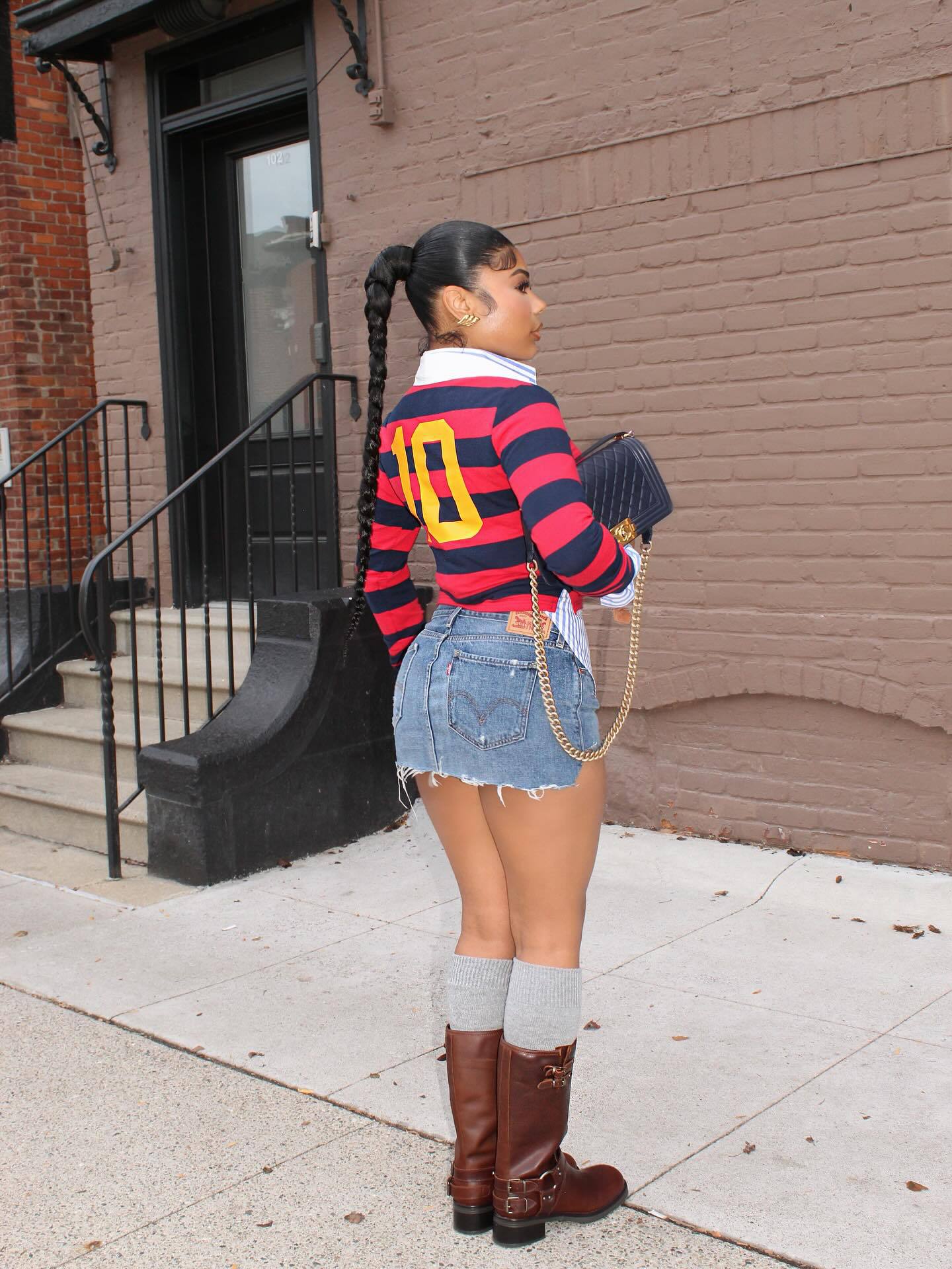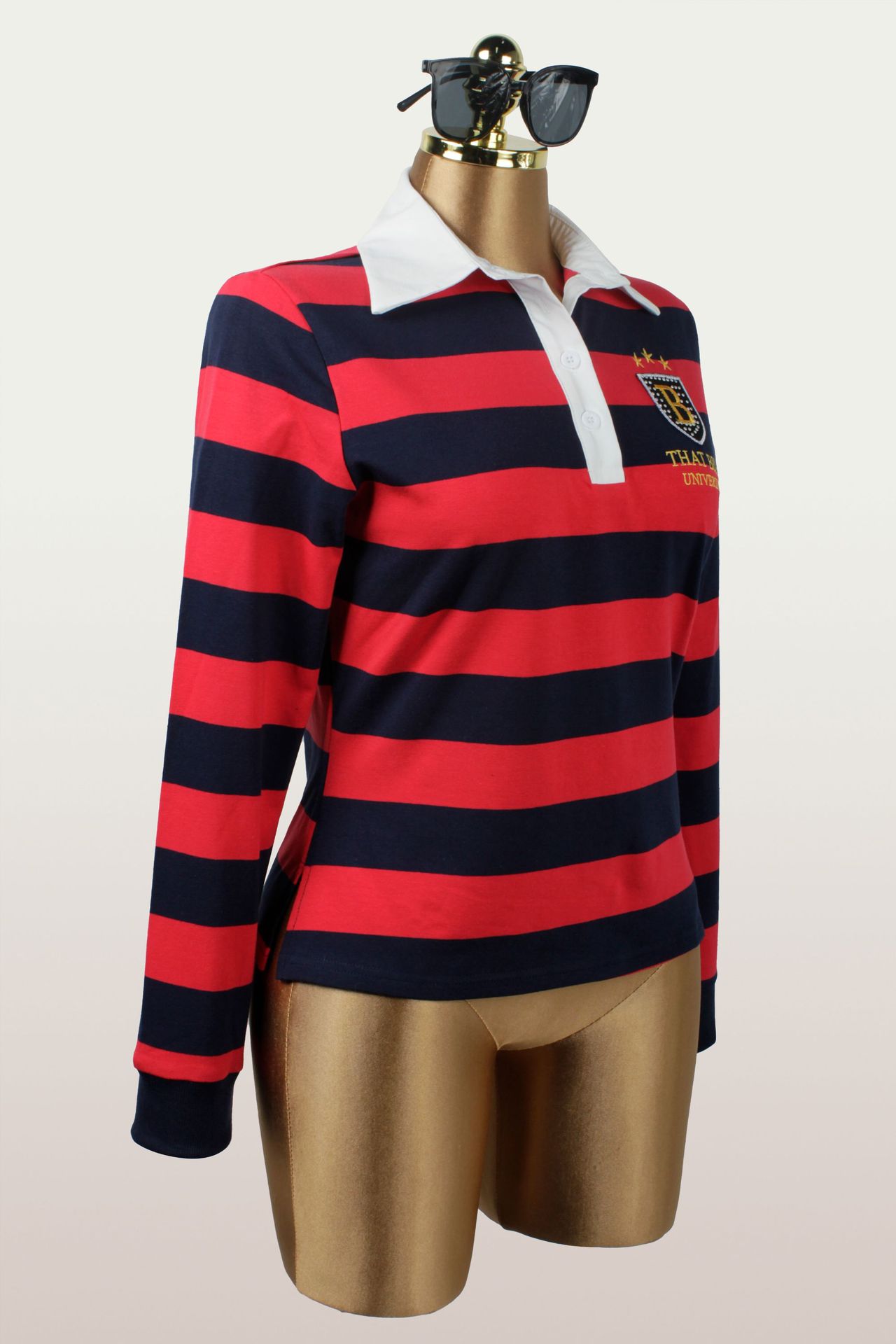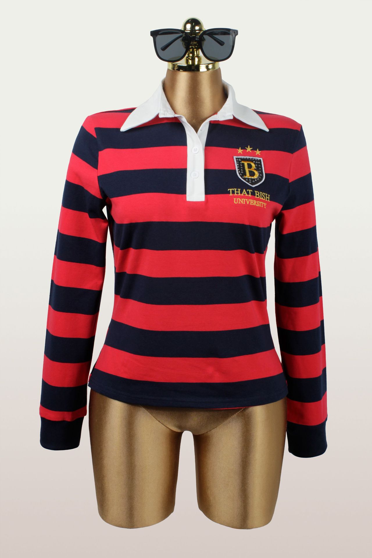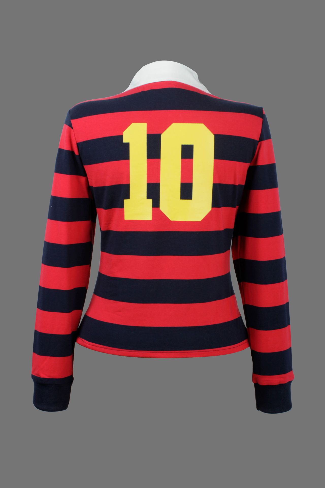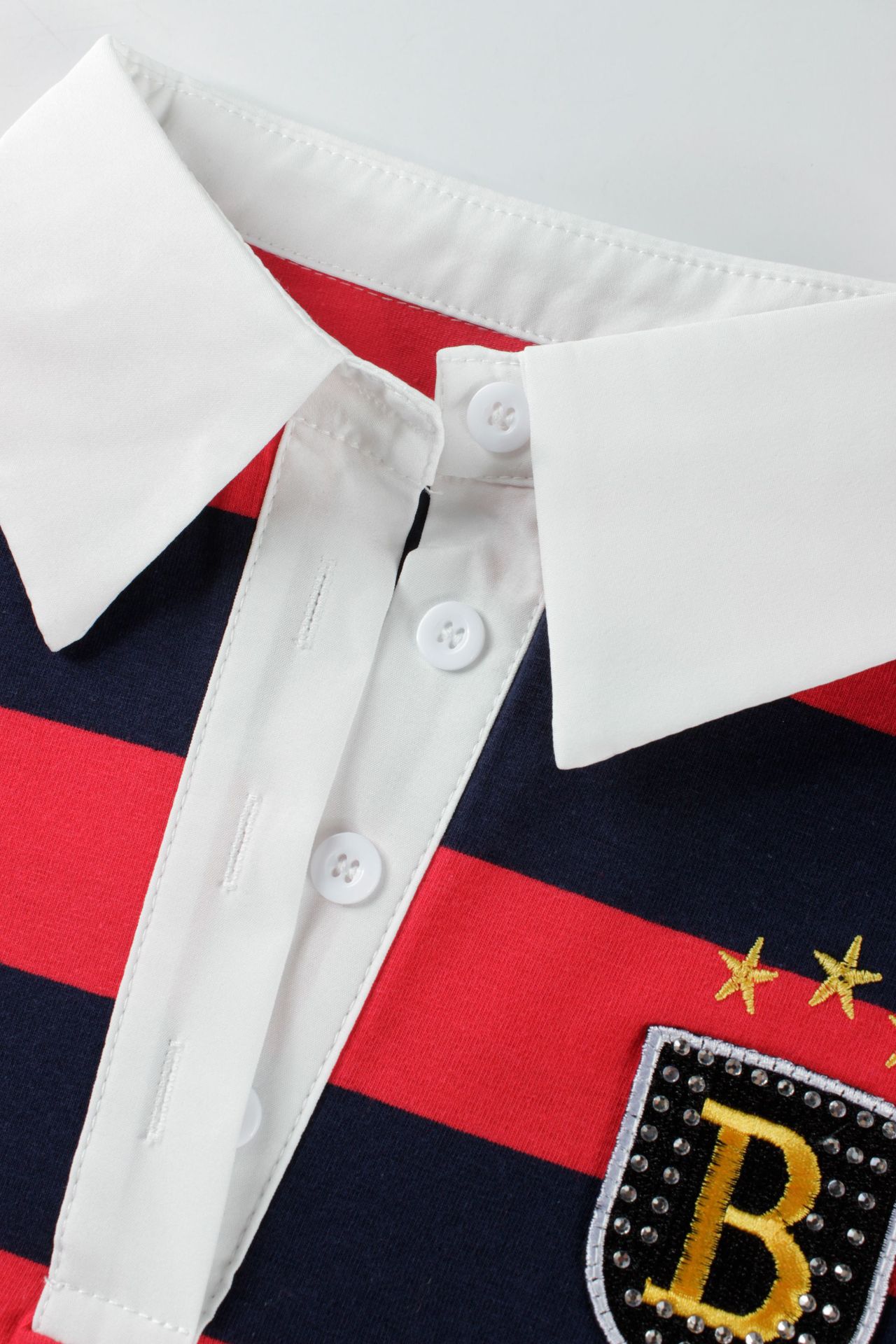 Retro Trend Loose Casual Striped Contrast Color Lapels Polo Shirt Top Sweater Women