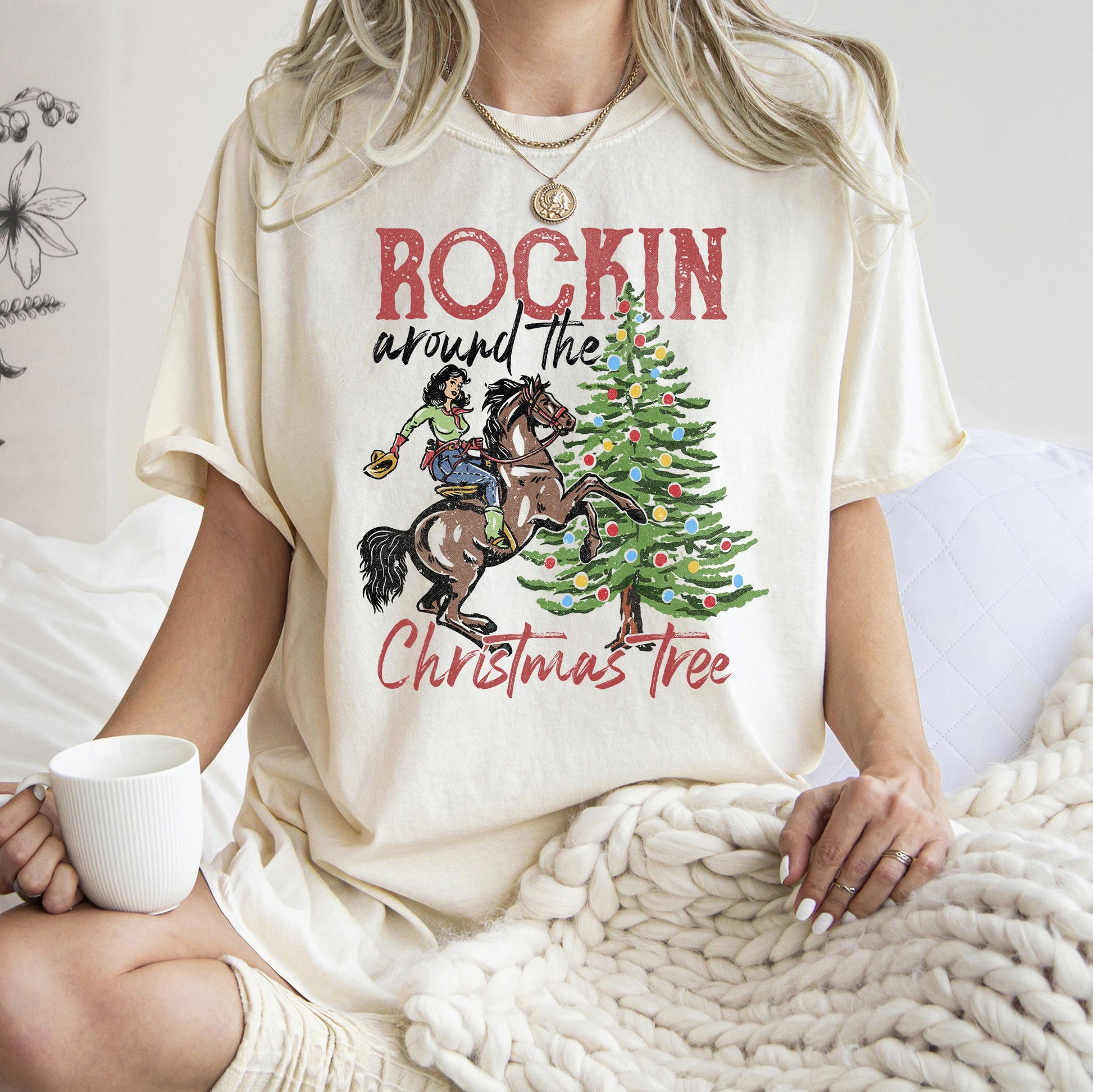 Embrace the festive spirit with our Rocking Around The Christmas Tree, Cowboy, Horse, Rodeo, Comfort Colors T-shirt. This unique graphic tee combines classic cowboy charm with modern comfort, making it a must-have for the holiday season. Made from high-quality materials, this t-shirt is perfect for celebrating Christmas in style while ensuring you stay cozy all day long.