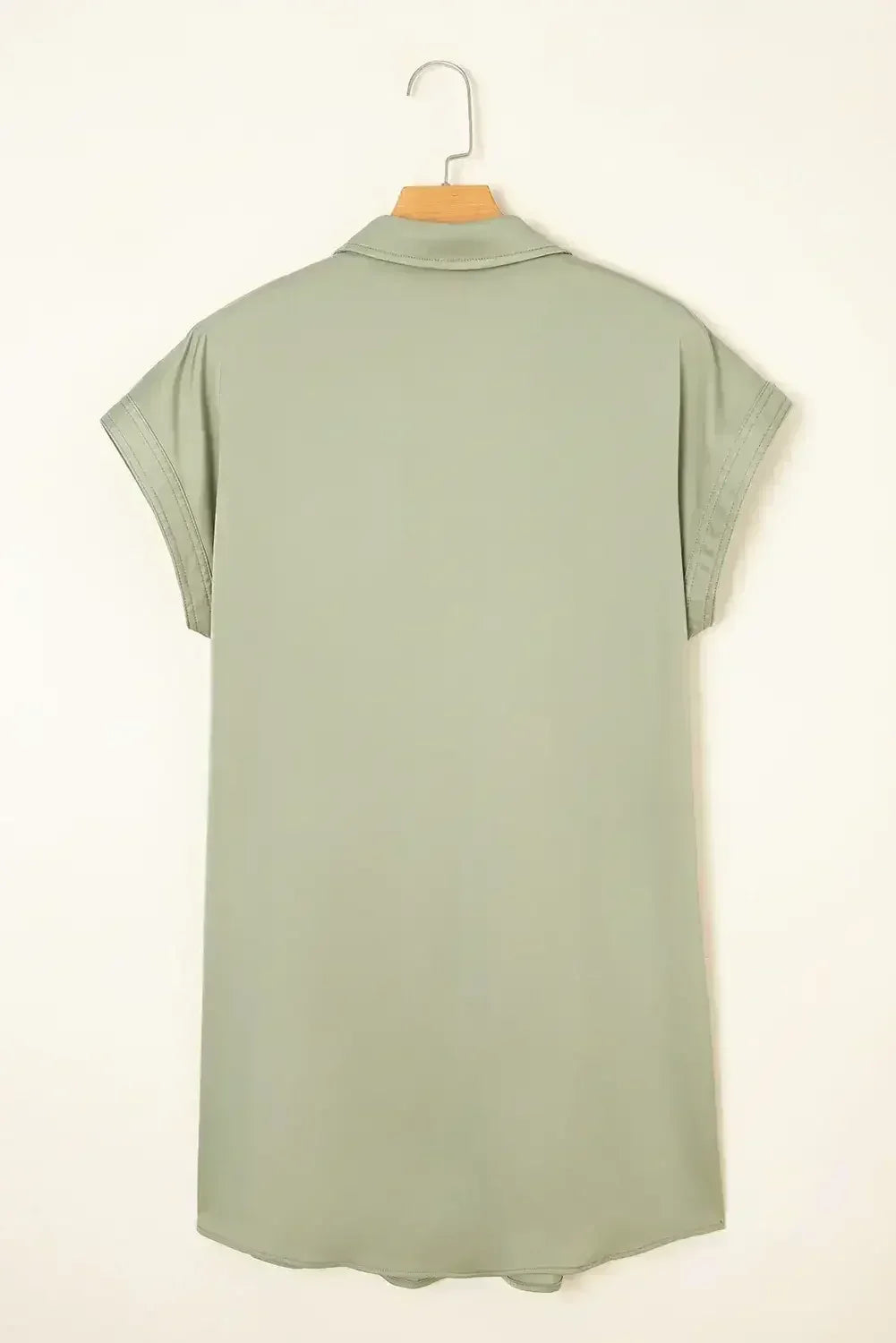 Rose Red Buttoned Collar Shift T Shirt Dress