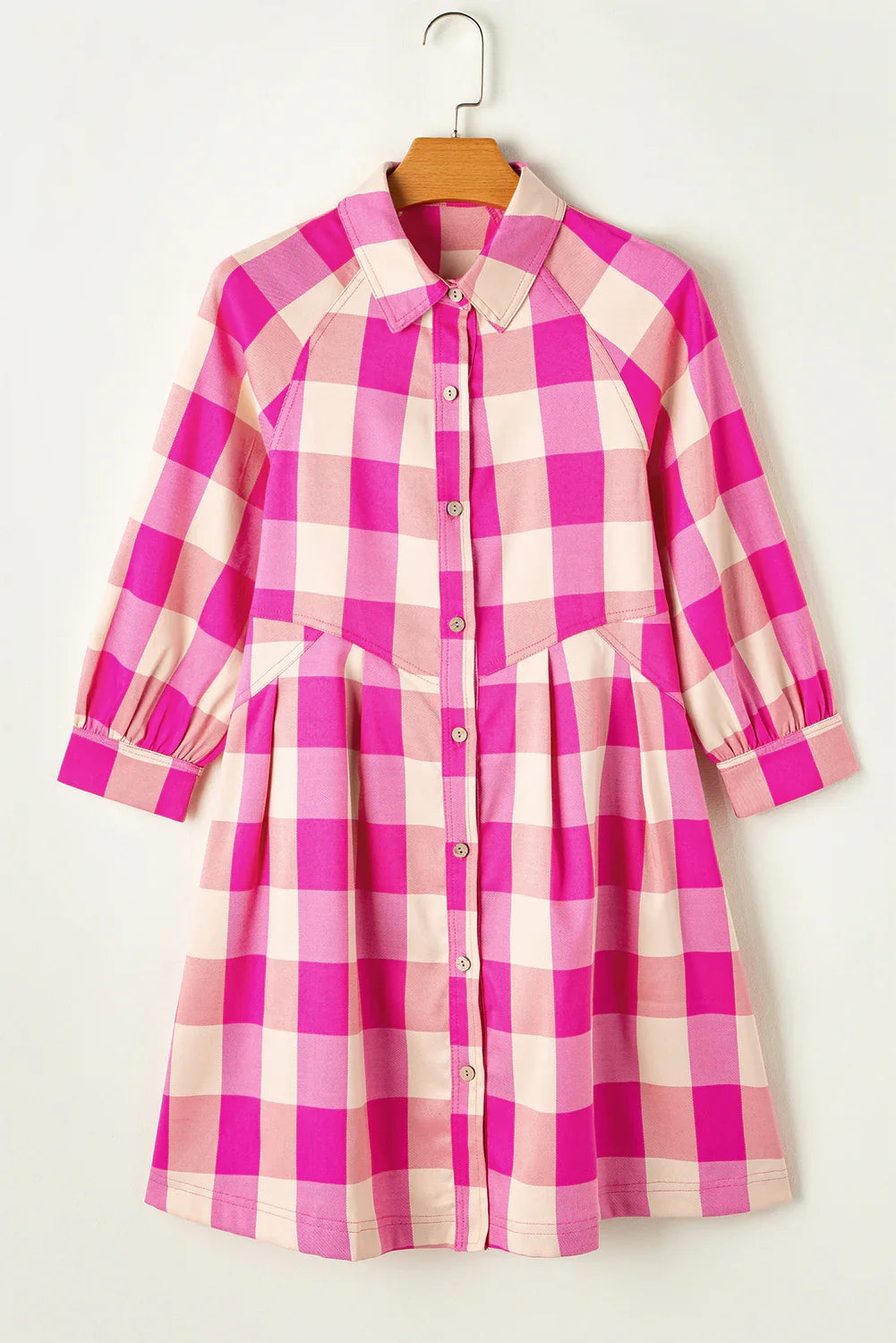 Rose Red Hidden Pocket Plaid Button Down Shirt Dress
