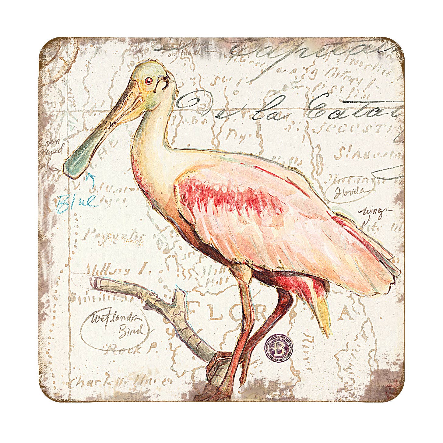 Roseate Spoonbill Bird Coaster Handcrafted Set of 4