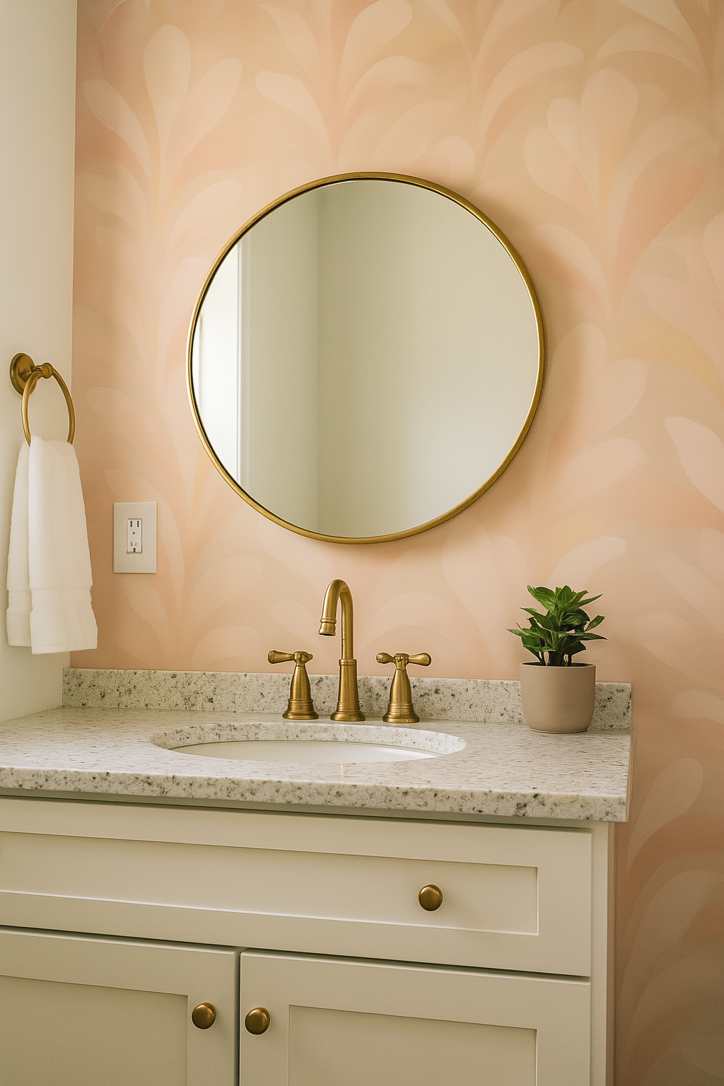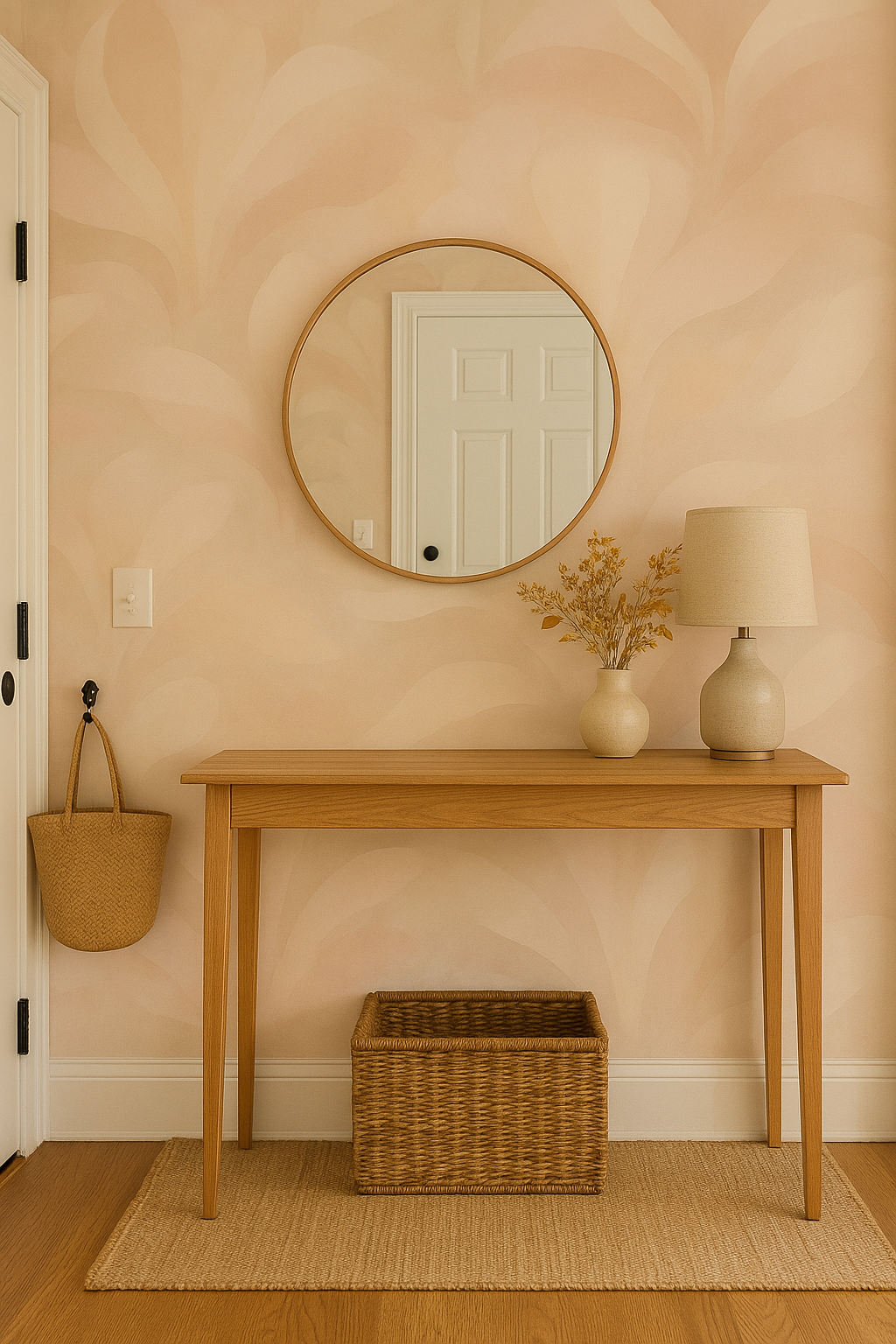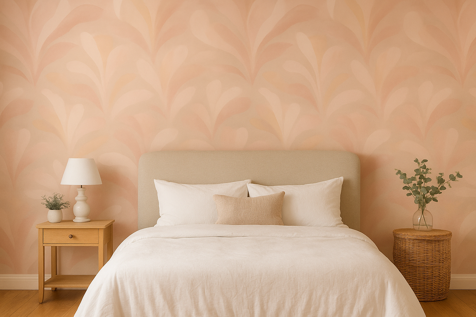 A fluid, abstract floral wallpaper that feels like soft petals in motion, Rosewater Veil wraps your walls in warmth and calm. Blending pastel pinks, muted peaches, and dusty mauves, this design mimics the movement of a watercolor bloom, creating a serene and spa-like ambiance. Perfect for bedrooms, wellness studios, or romantic living spaces, its seamless blending and tone-on-tone palette create a luxurious sense of flow. A quiet stunner for lovers of soft design.