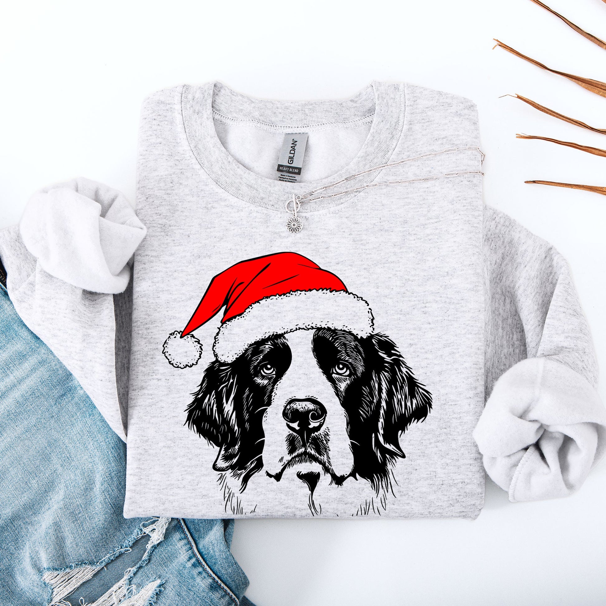 This Saint Bernard, Santa, Dog, Christmas, Dog Lover, Pet Sweatshirt pairs wonderfully with jeans for a relaxed yet trendy look. It's perfect for casual outings, festive gatherings, or cozy nights in, making it an ideal choice for every dog lover this holiday season.