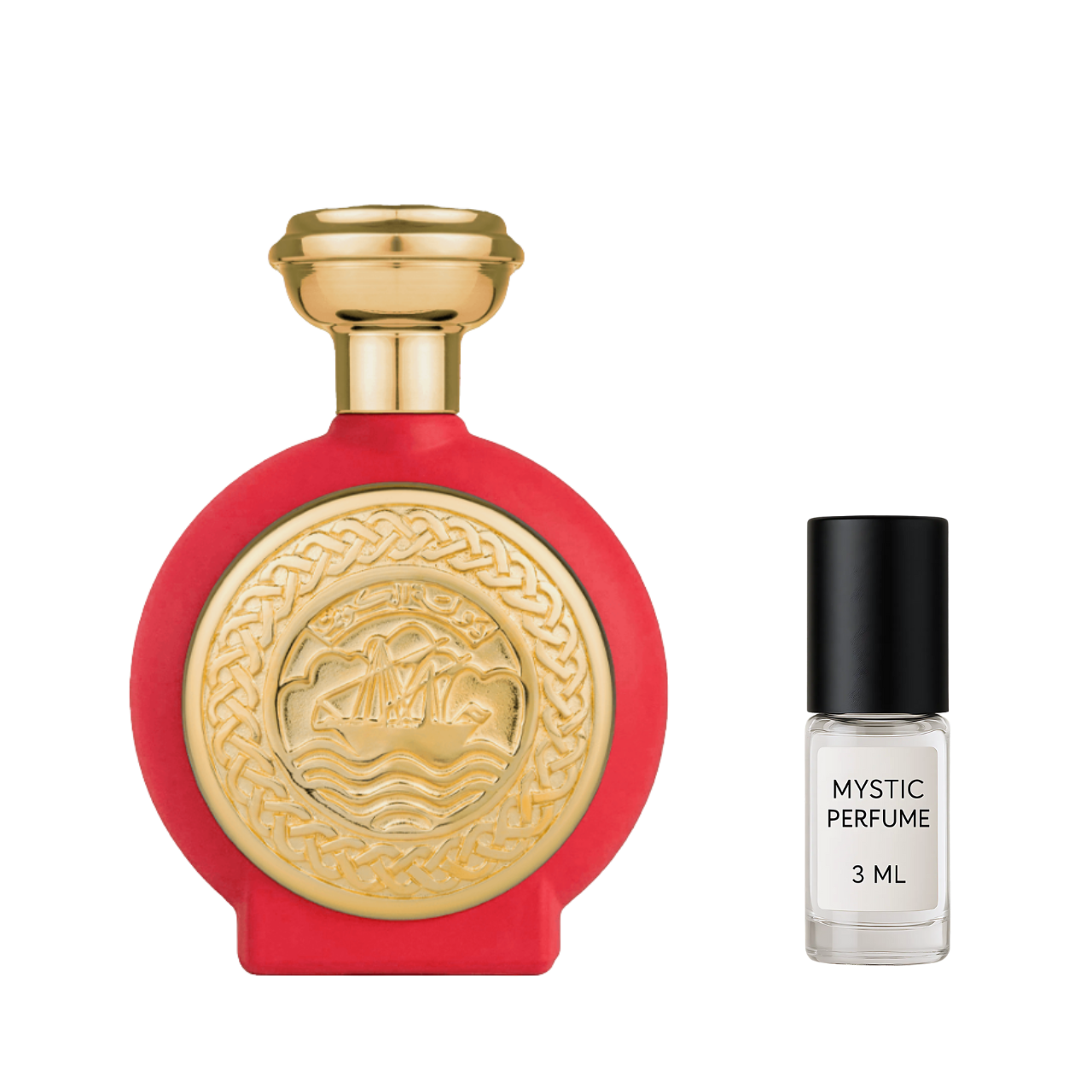 Story: Inspired by the ancient traditional embroidery form of Kuwait, geometric shapes woven by hand. SADU is an empowering, sensual, and optimistic scent, presented in the iconic Boadicea bottle. A beautiful warm red hue is enhanced by a powerful gold shield that showcases the Boom, a traditional Arabian sailing vessel carrying precious pearl.