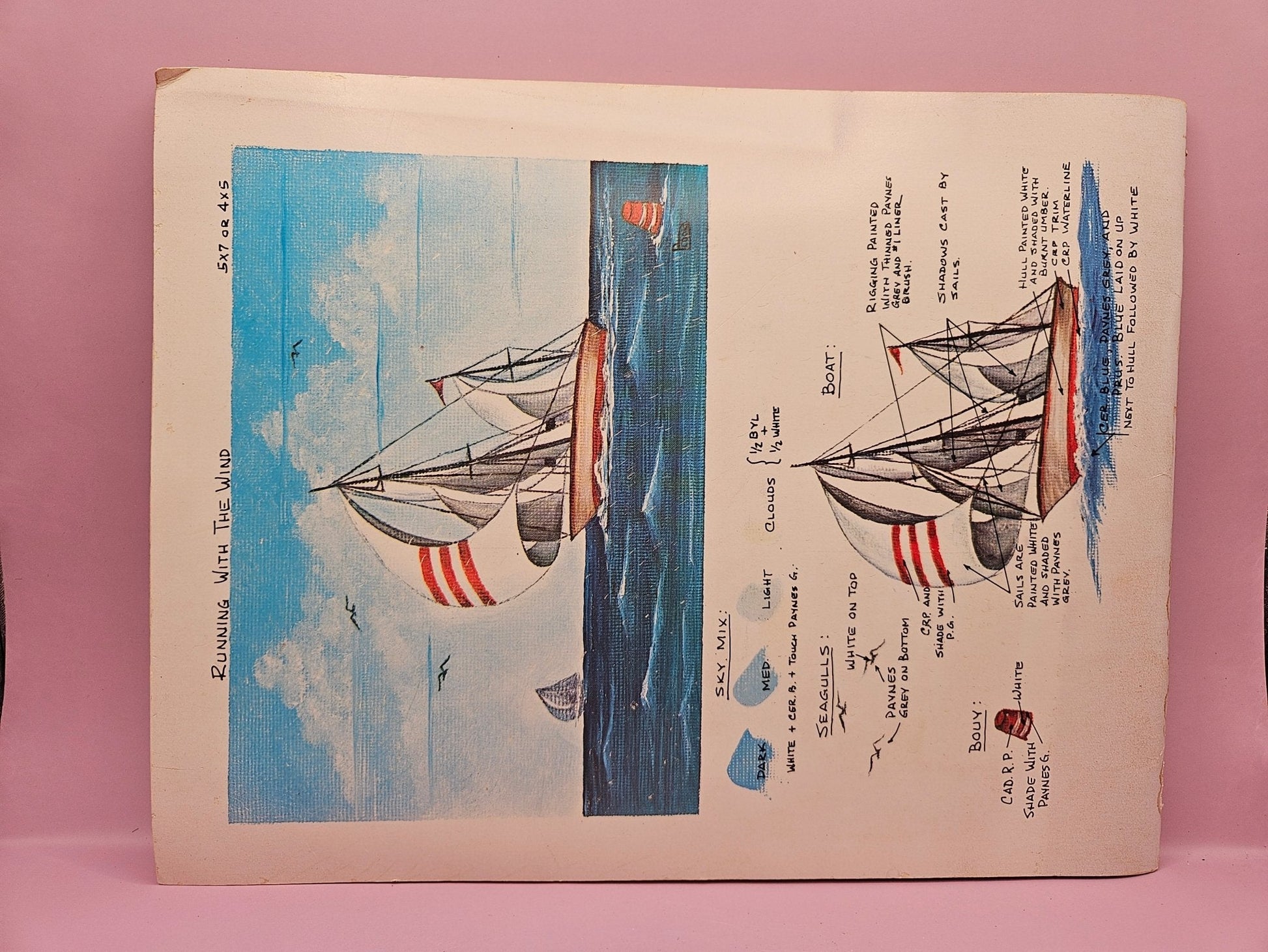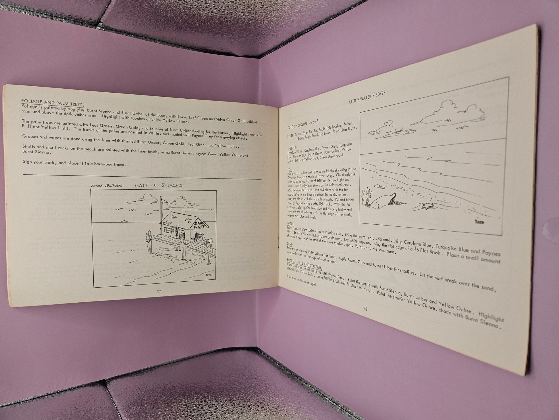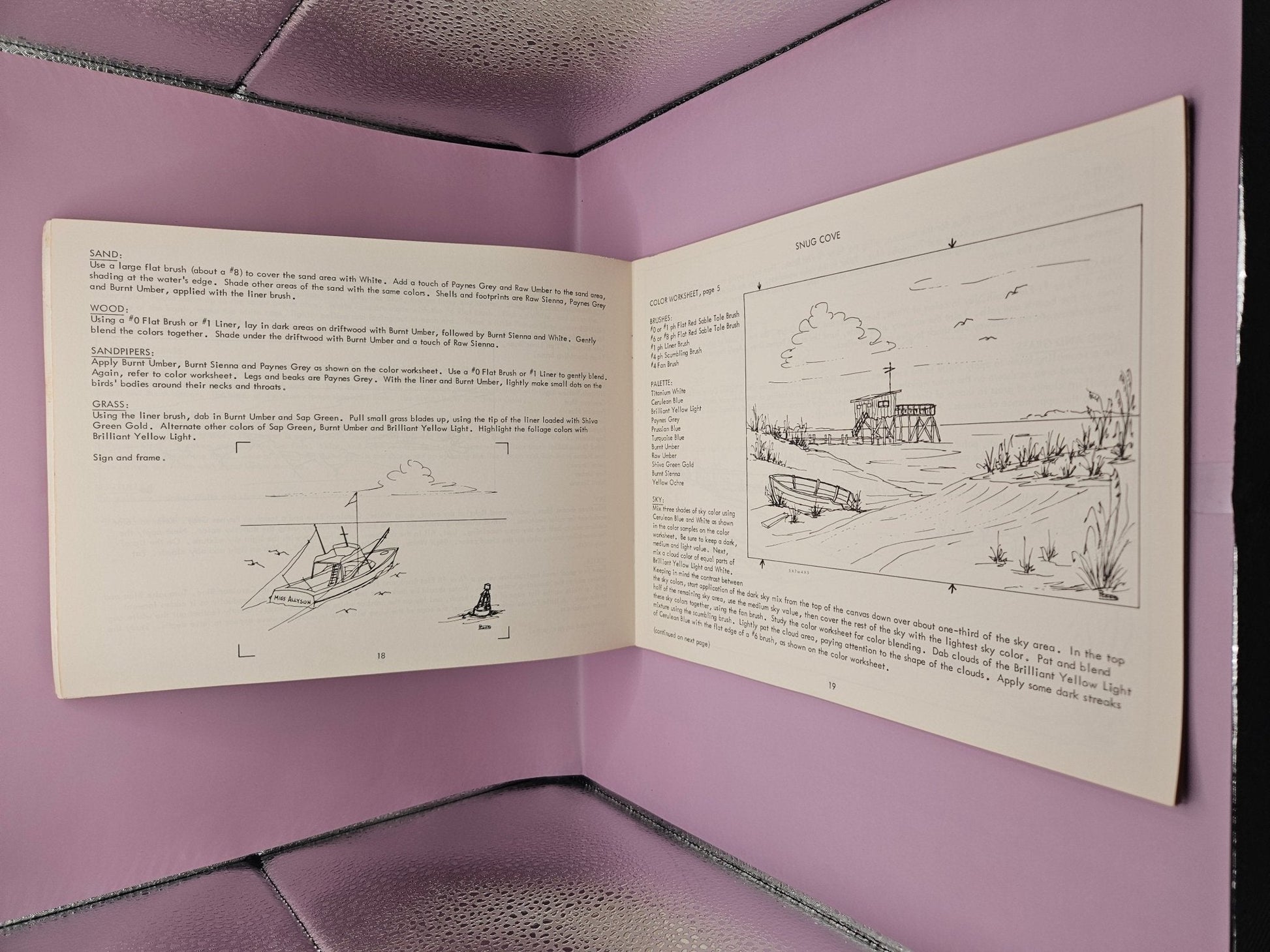 This 1977 Paperback book features patterns, illustrations, and instructions for painting ocean pictures. With no marks or writing found inside, it is in good condition with minor rub wear and tight binding. Enhance your painting skills with colorful illustrations and black and white drawings.