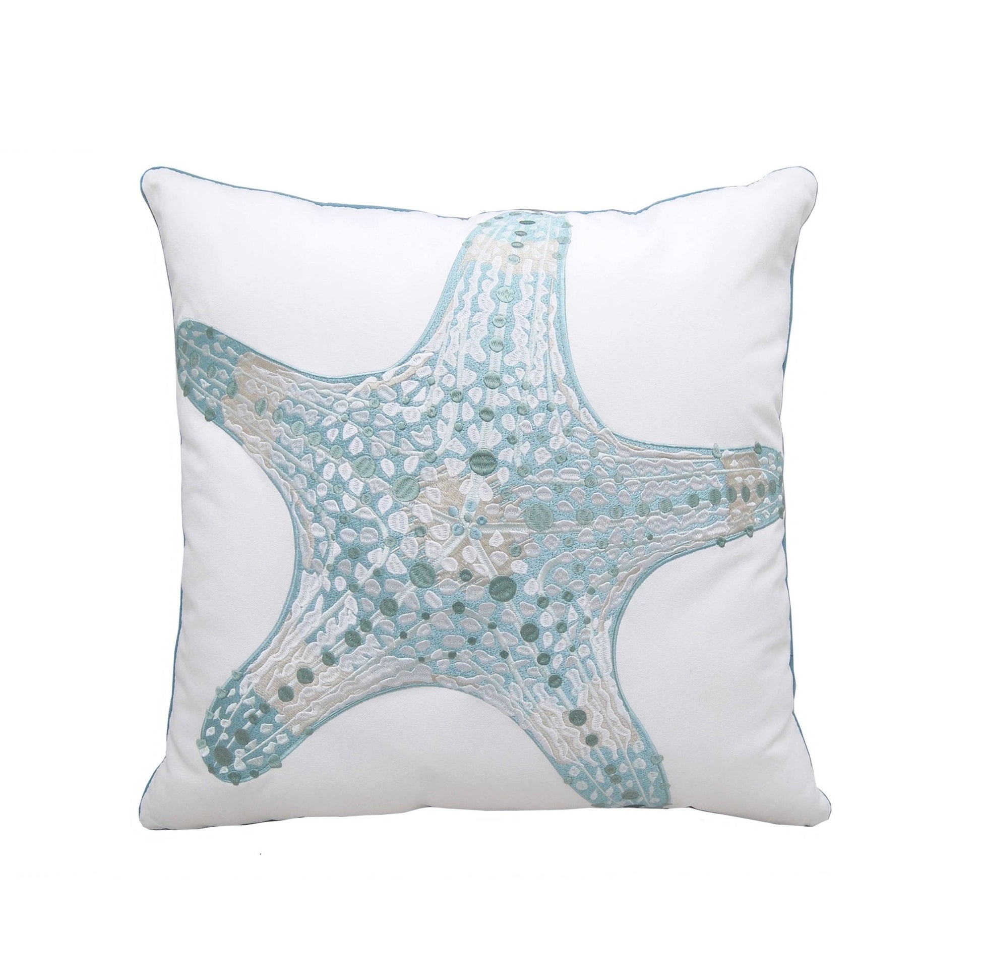 Sea Glass Embroidered Starfish Indoor/Outdoor Pillow