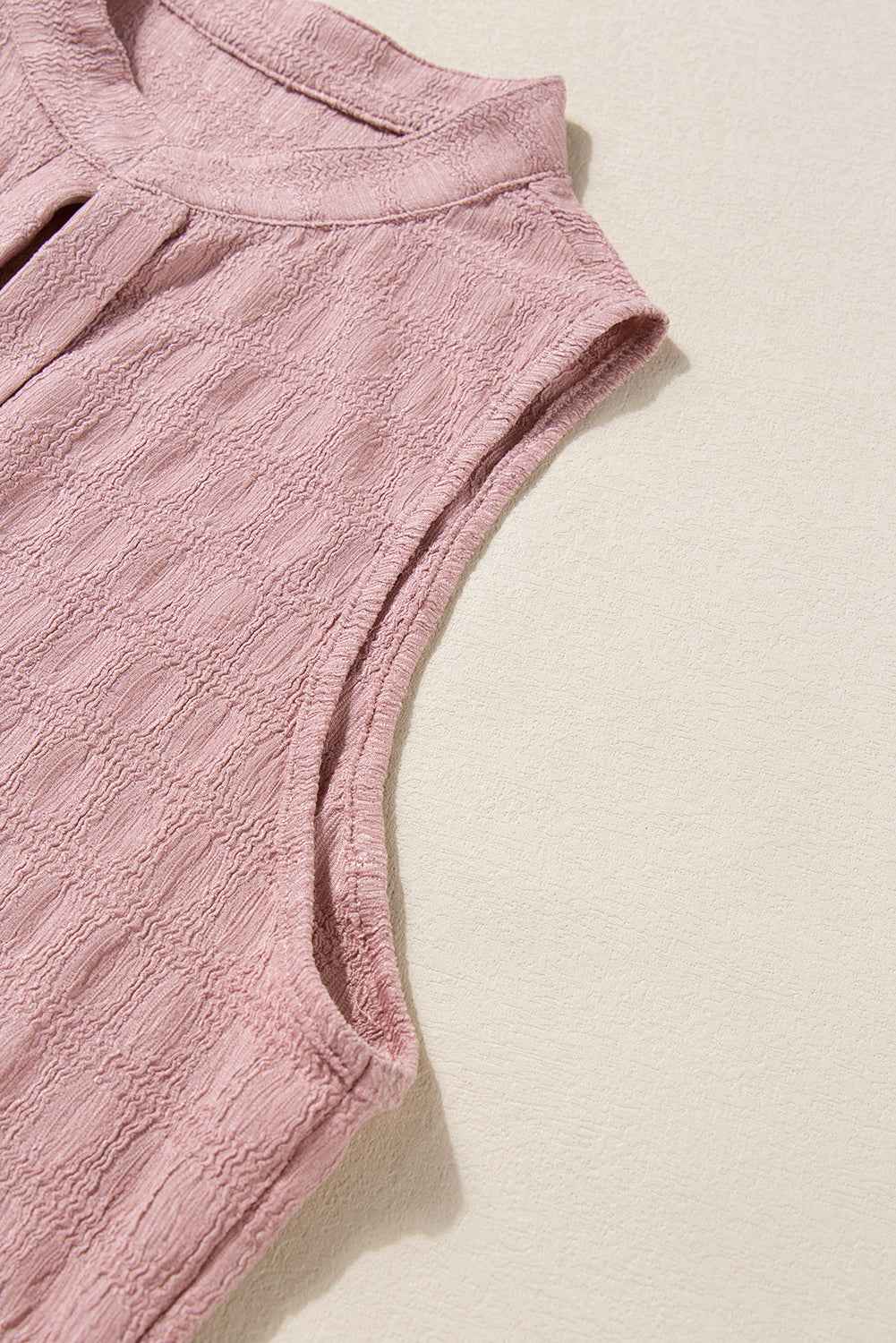 Sea Green Sleeveless Top - Textured Split V Neck Women's Shirt
