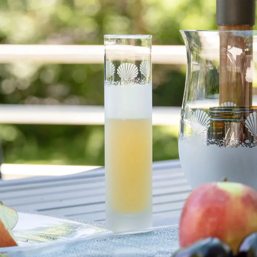 Crafted with iconic simplicity, these glasses are hand-engraved and frosted by skillful craftsmen to simulate ocean foam and scattered seashells. Whether near or far this collection is sure to spark memories of walking along the ocean waves and collecting seashells.