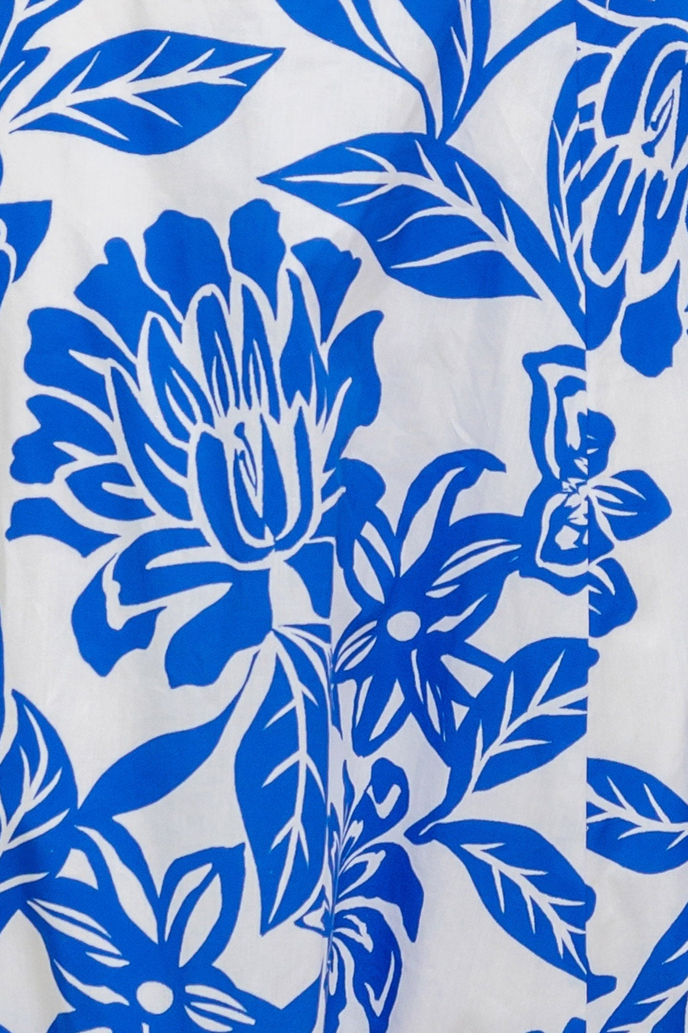A printed woven ankle dress featuring straight neckline, circle skirt, bare back with cross straps