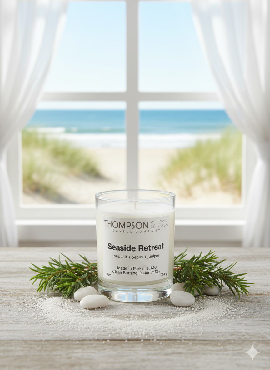 Experience the calming and refreshing scents of Seaside Retreat with our coconut soy candle. Infused with sea salt, peony, and juniper, it will transport you to your favorite seaside getaway. Enjoy the perfect balance of relaxation and rejuvenation.