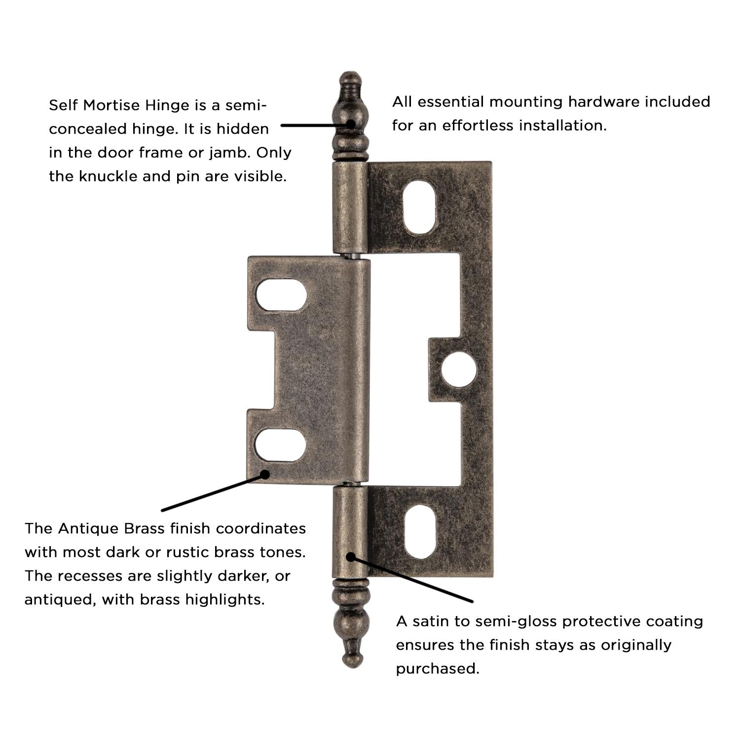 - Self mortise means no mortise - no machining or cutting required for mounting
