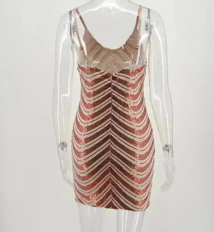 Sequin dress stretch sequin skirt open back beaded spaghetti strap