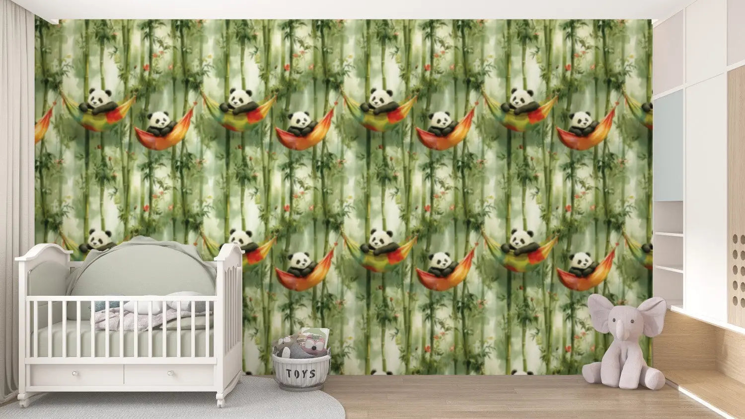 - Calming pandas and delicate bamboo bring a cozy, gender-neutral aesthetic.