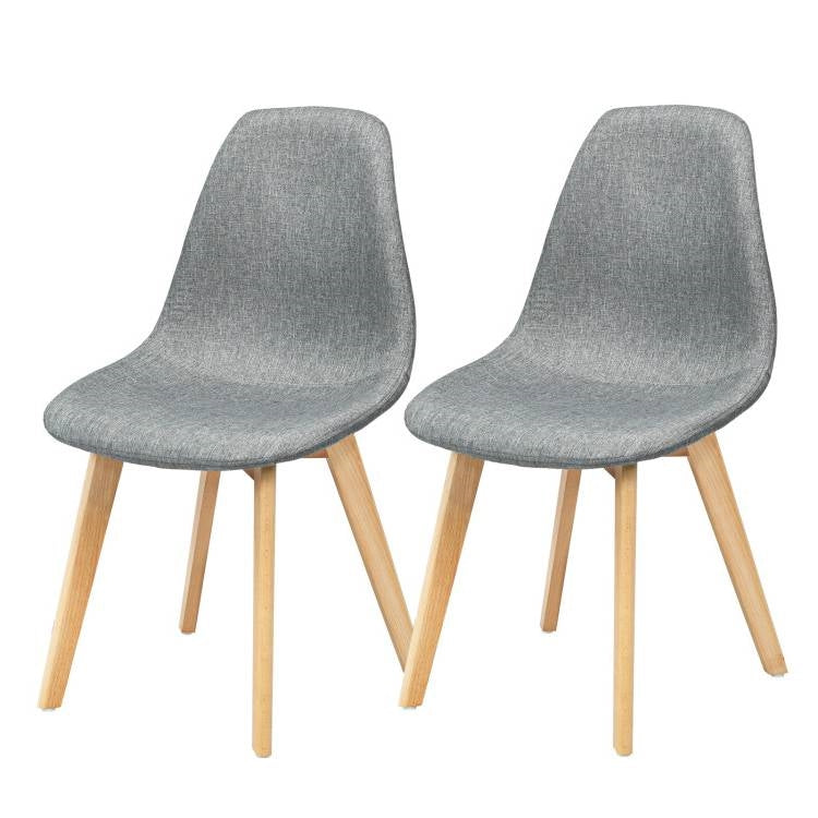 - Set of 2 Mid-Century Modern Gray Linen Upholstered Dining Chair with Wood Legs
