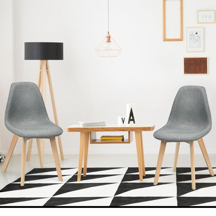 Sturdy wood Construction is enhanced by bottom cross structure, so this Set of 2 Mid-Century Modern Gray Linen Upholstered Dining Chair with Wood Legs is great stability and can load up to 330lbs. Besides, covered by durable linen, the chair with soft touch keeps breathable and ensures lasting usage. Ergonomic backrest perfectly supports your back and releases back pressure, and you can stretch your body or change sitting positions. Filled with high elasticity foam, the upholstered dining chair offers hip relaxation and a comfortable sitting experience. Featured with an uncluttered and smooth shape, this leisure chair has elegant and modern design look. Linen cover and beech wood legs add textural appeal to your living space. Non-noise foot pads can protect your floor and lightweight design for effortless transportation. The 2 chairs are specially designed for intimate conversation, which provide a cozy place for families of 2 to enjoy dinner or reading together. The stylish design can match various decoration styles in the lounge, dining room, living room and study room. It is easy to assemble the chairs with all parts numbered in the package, so you don't need to spend much more energy on installation but enjoy. Besides, since smooth wood legs and fabric cover, the daily maintenance is easy to do.