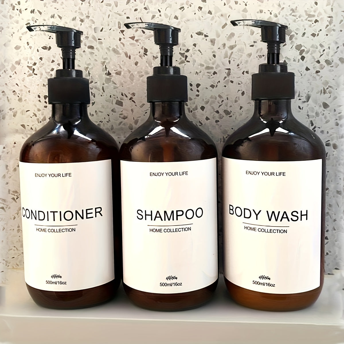 Meet your new besties – the Set of 3 Refillable Pump Dispensers with Labels! These baddies are your one-way ticket to zero mess and a vibe that’s fresher than your last playlist drop. Each dispenser is a sleek 500ml masterpiece, ready to turn any bathroom or kitchen into a chic, organized paradise. They're all about those clean aesthetics mixed with practicality – no need to break the plug for some electricity, just pump up the good vibes. With easy floor mount installation, you’ll have these babes looking cute and sitting pretty in no time. Plus, let’s talk major eco points here – cut down on single-use plastic and let these dispensers level up your recycling game! 🌍✨