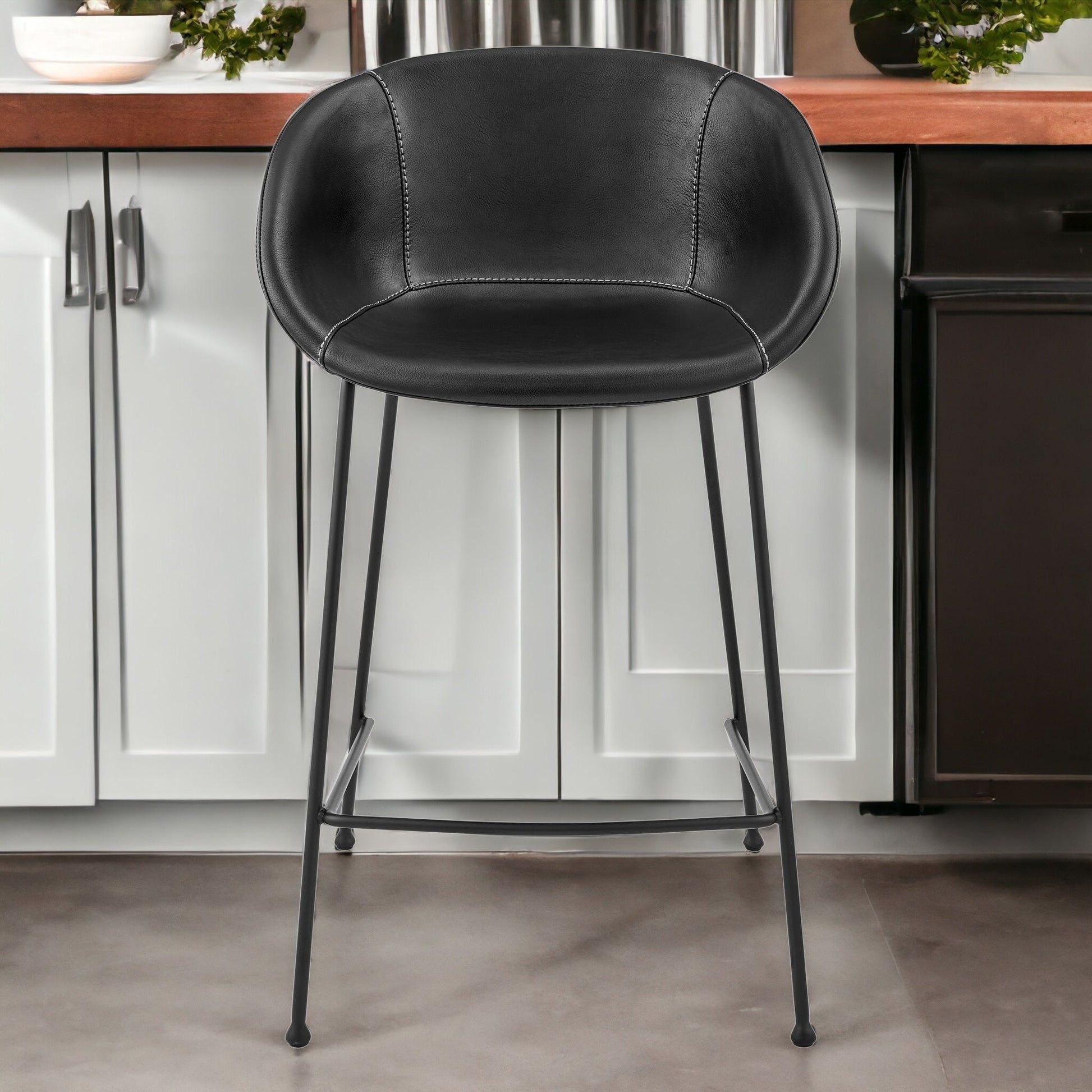 Set of Two 26" Black Faux Leather And Steel Low Back Counter Height Bar Chairs