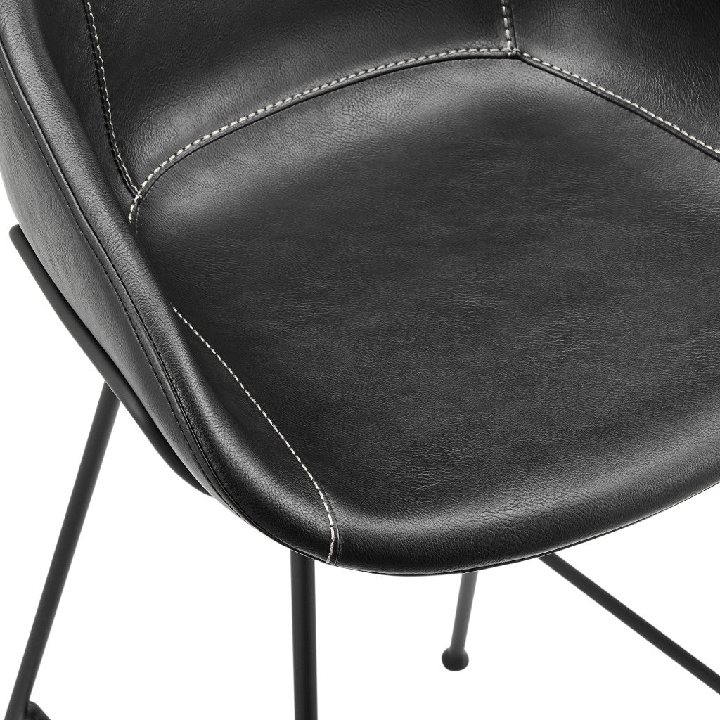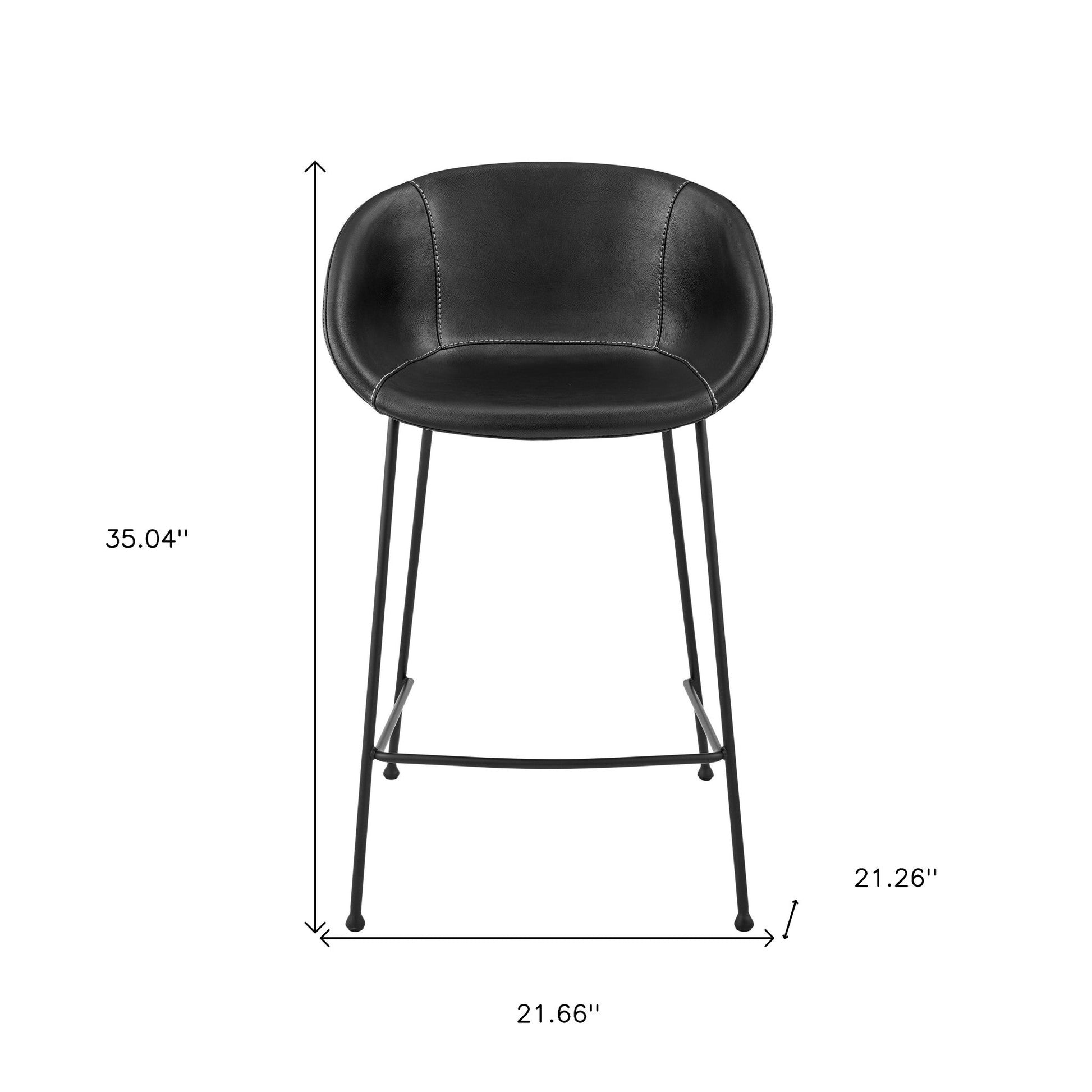 Bring a trendy bar vibe to your space, with this set of two 26-inch black faux leather and steel low back counter height bar chairs with footrest. The base of this stool is made from steel in a black, that matches the faux leather, also in black. The rectangle shape of the seat combines with a low back to give this chair a comfortable and fashionable look. Designed with armrests for your comfort, this chair also features a footrest for comfort and convenience. 35.04-inch H x 21.66-inch W x 21.26-inch D