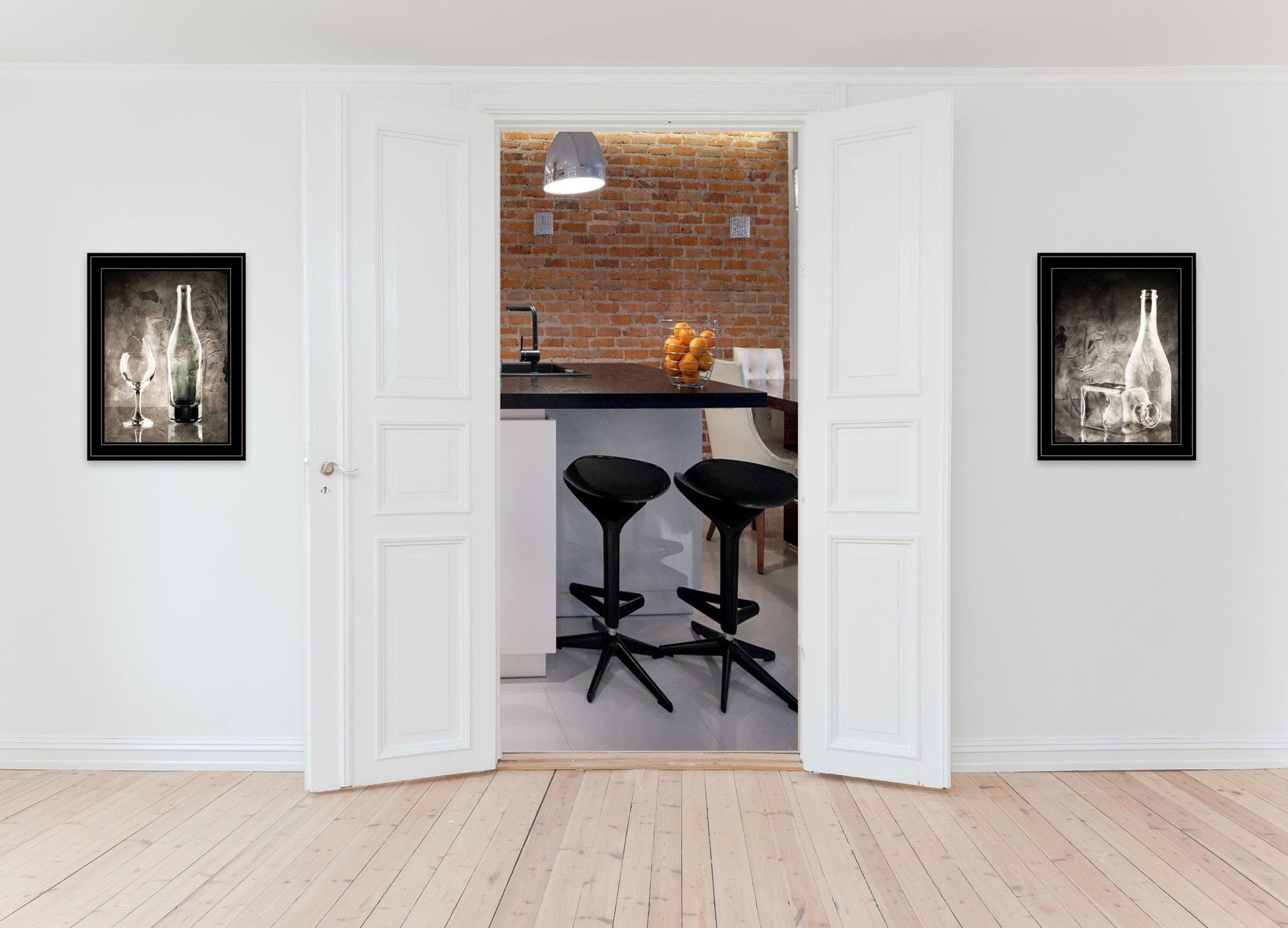 This set of two moody gray glassware still life 3 black framed print kitchen wall art will add a beautiful decorative accent to your decor. This print is a visual artistic expression that allows you to decorate your space in style. The black and white photography style makes this photographic art appealing and gives it visual interest. Reproduced for you on paper, this hanging decorative accent will be a trendy and fashionable way to dress your walls. Hang on your wall to add some up to date fashion and decoration. Instantly liven up your space with this art that brings color and dimension to your walls. 19 inches H x 15 inches W x 1 inches D