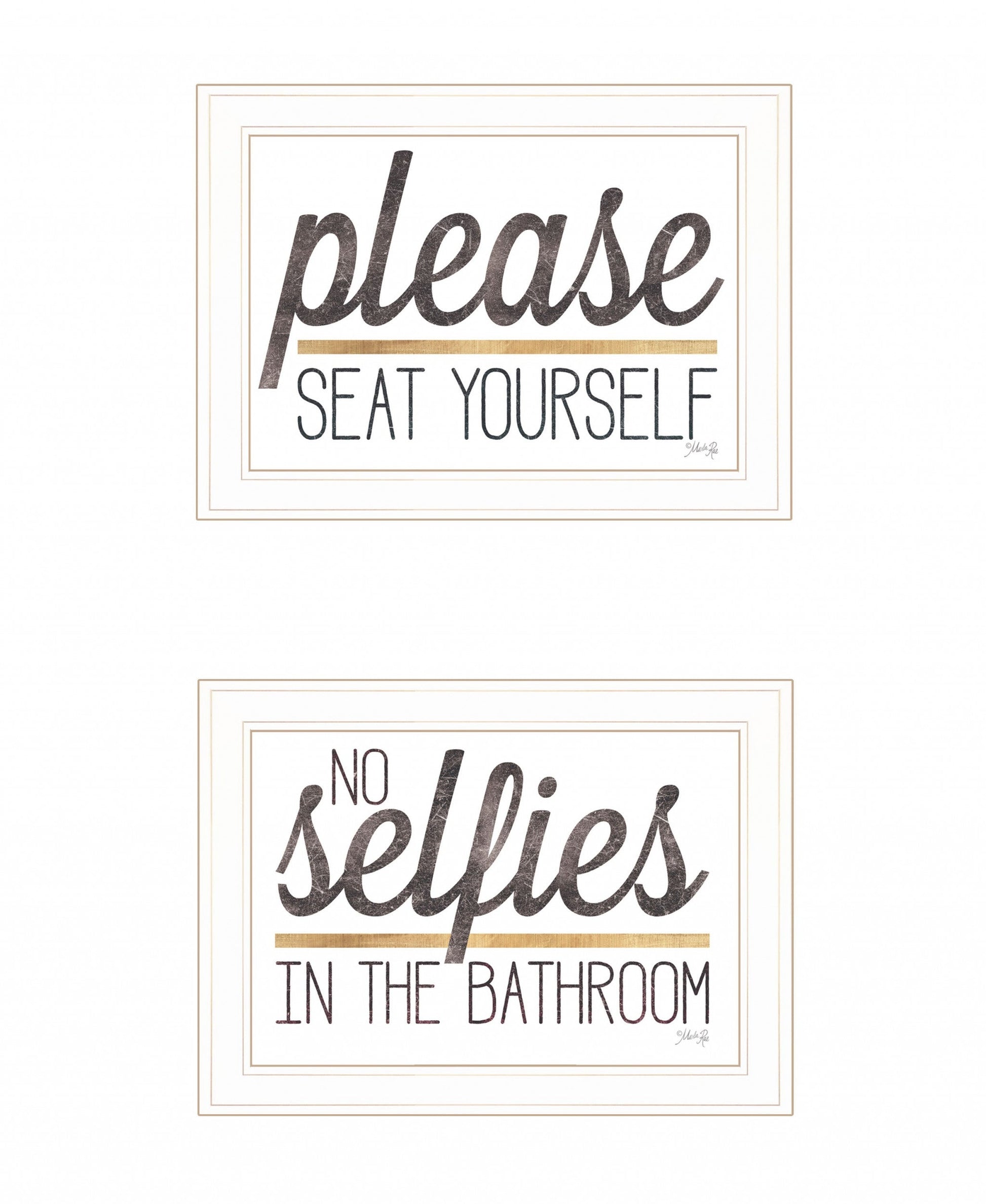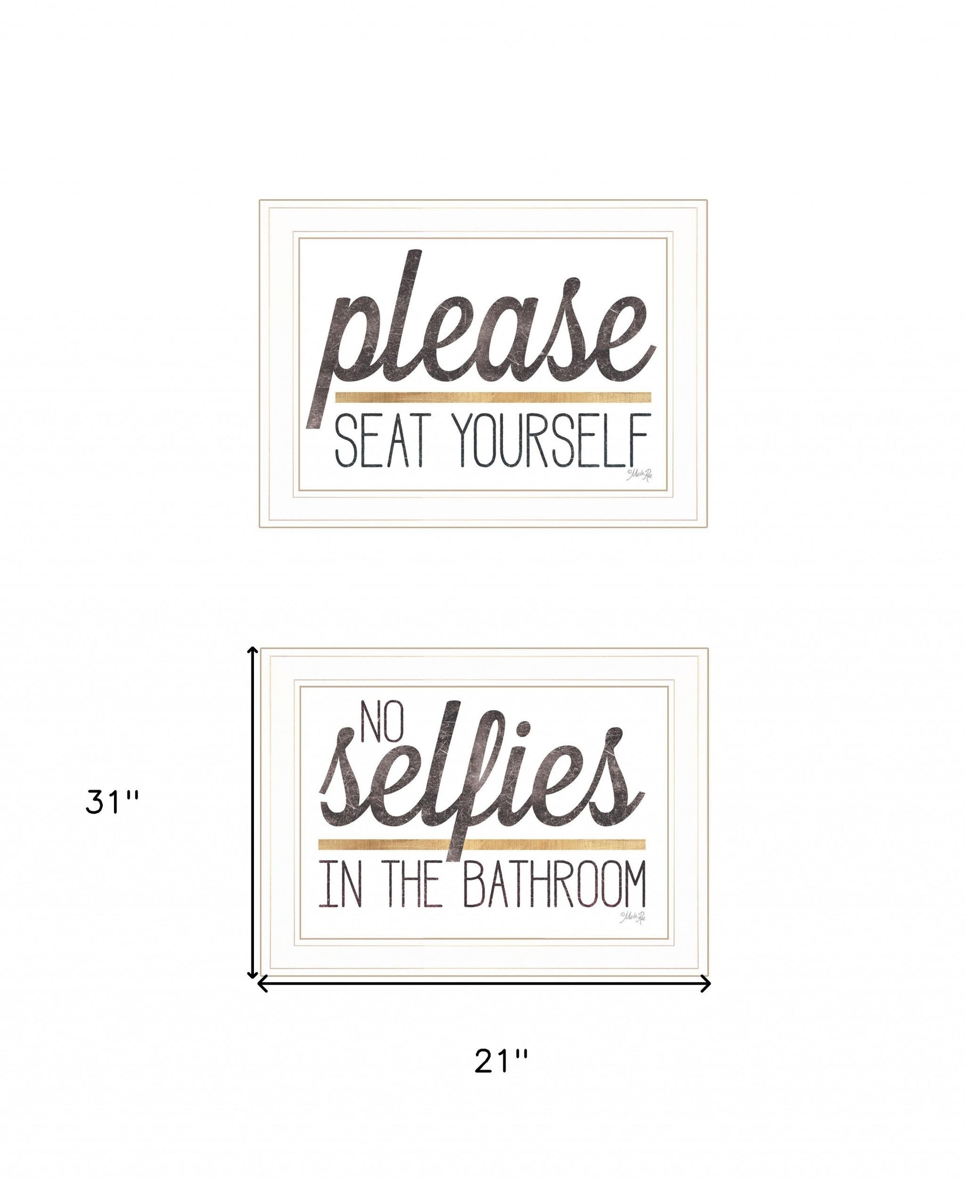 Bring some sizzle to your space with this eye-catching set of two no selfies when seated 1 white framed print bathroom wall art. This print is a visual artistic expression that allows you to decorate your space in style. Reproduced for you on wood, this hanging decorative accent will be a trendy and fashionable way to dress your walls in a rustic and modern farmhouse vibe. Hang on your wall to add some up to date fashion and decoration. Utilize this opportunity to create a focal point in the room with this fabulous wall decor option. 31-inch H x 21-inch W x 1-inch D
