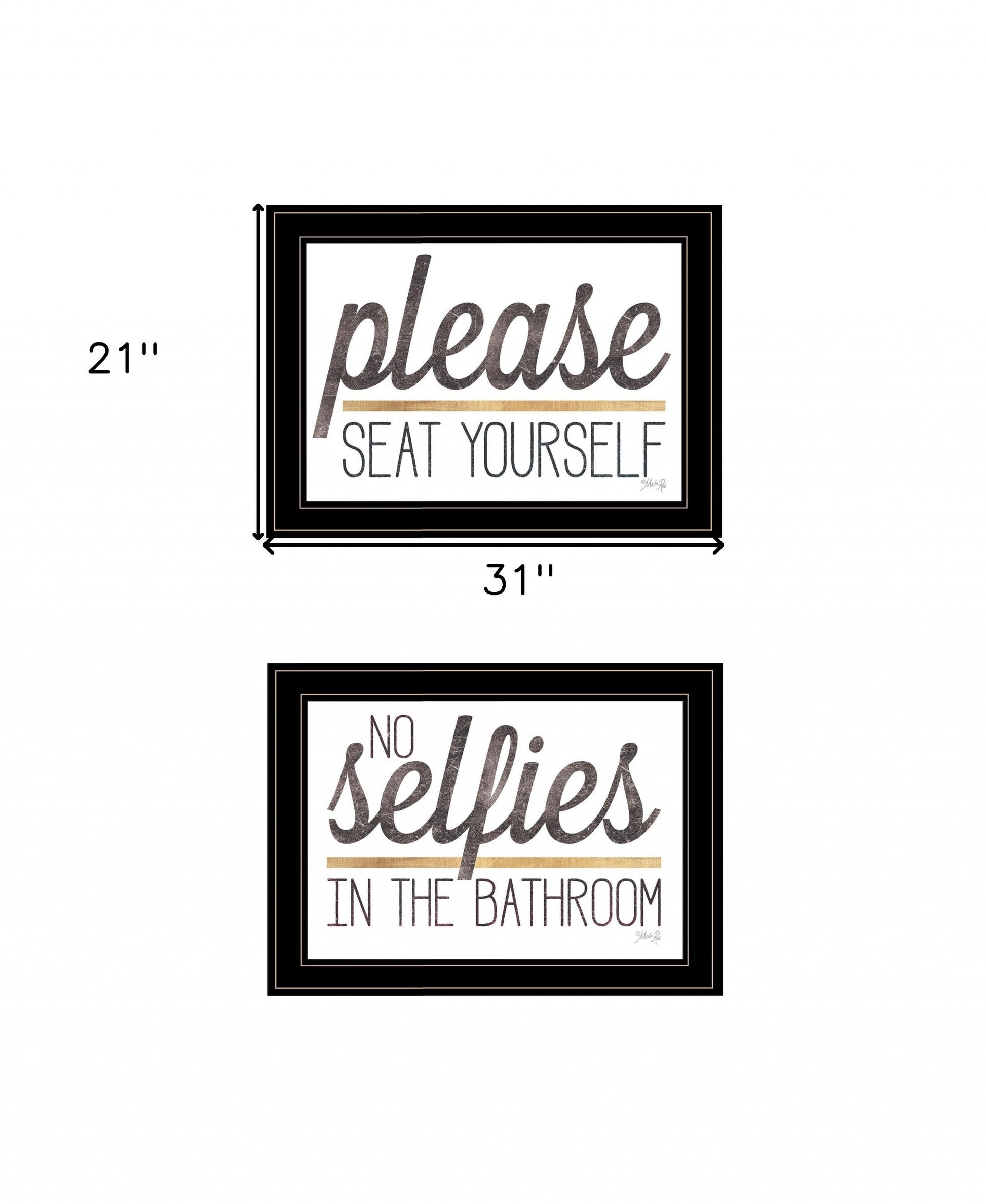 The set of two no selfies when seated 2 black framed print bathroom wall art is the perfect decorative accessory for your home. This print is a visual artistic expression that allows you to decorate your space in style. Reproduced for you on wood, this hanging decorative accent will be a trendy and fashionable way to dress your walls in a rustic and modern farmhouse vibe. Adding this hanging wall art to your space to make your room feel more finished and attractive. Instantly liven up your space with this art that brings color and dimension to your walls. 31-inch H x 21-inch W x 1-inch D