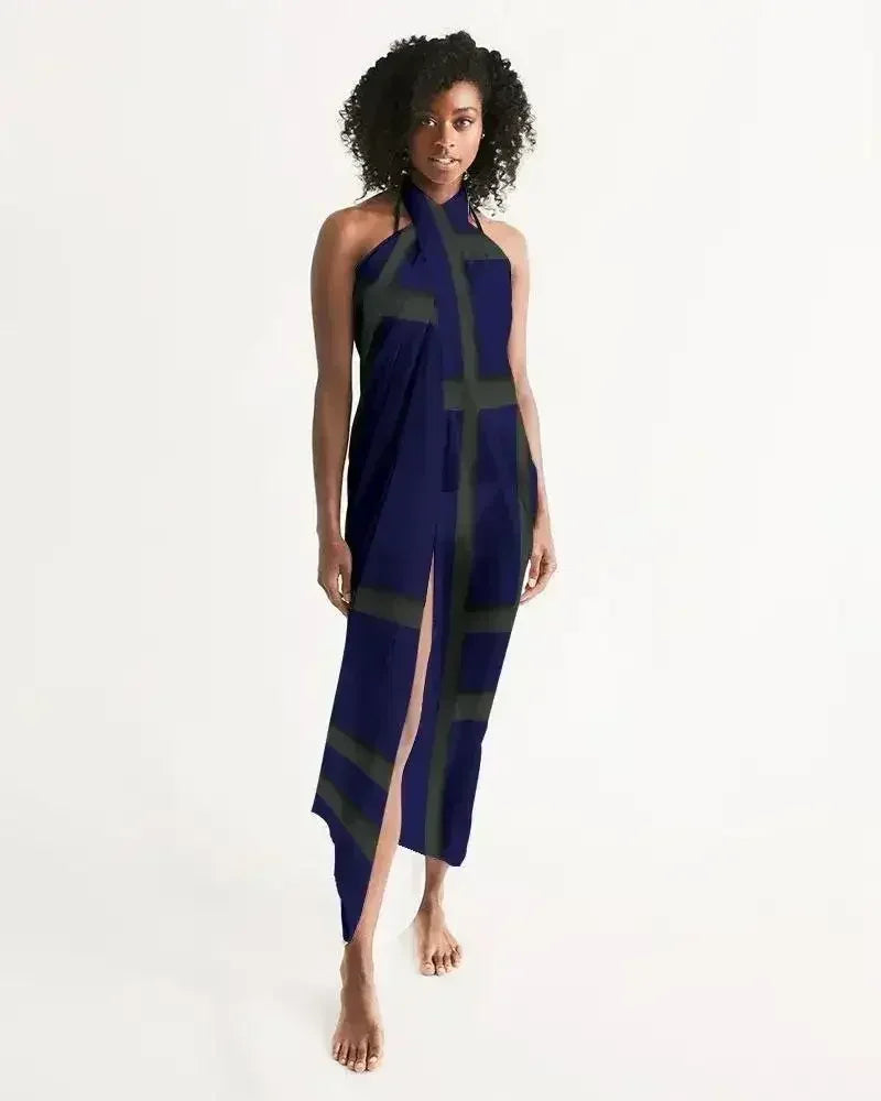 Sheer Sarong Swimsuit Cover Up Wrap / Geometric Dark Blue and Green