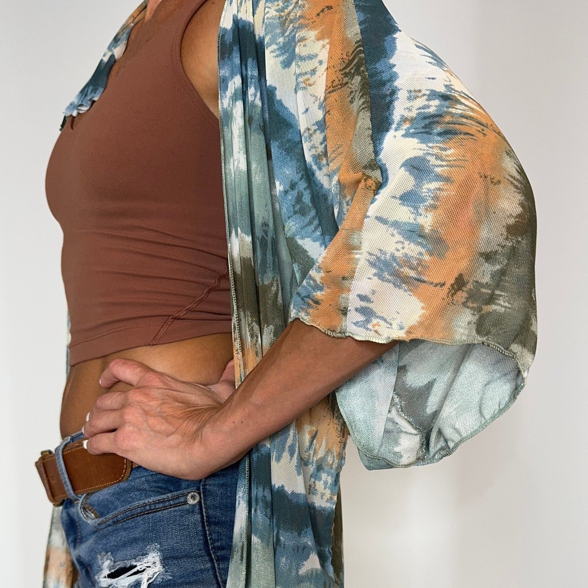 Travel-friendly and incredibly versatile, the Sheer Tie Dye Mesh Kimono Cover Up is perfect for packing light. It takes up virtually no space in your suitcase, making it the ultimate travel companion.