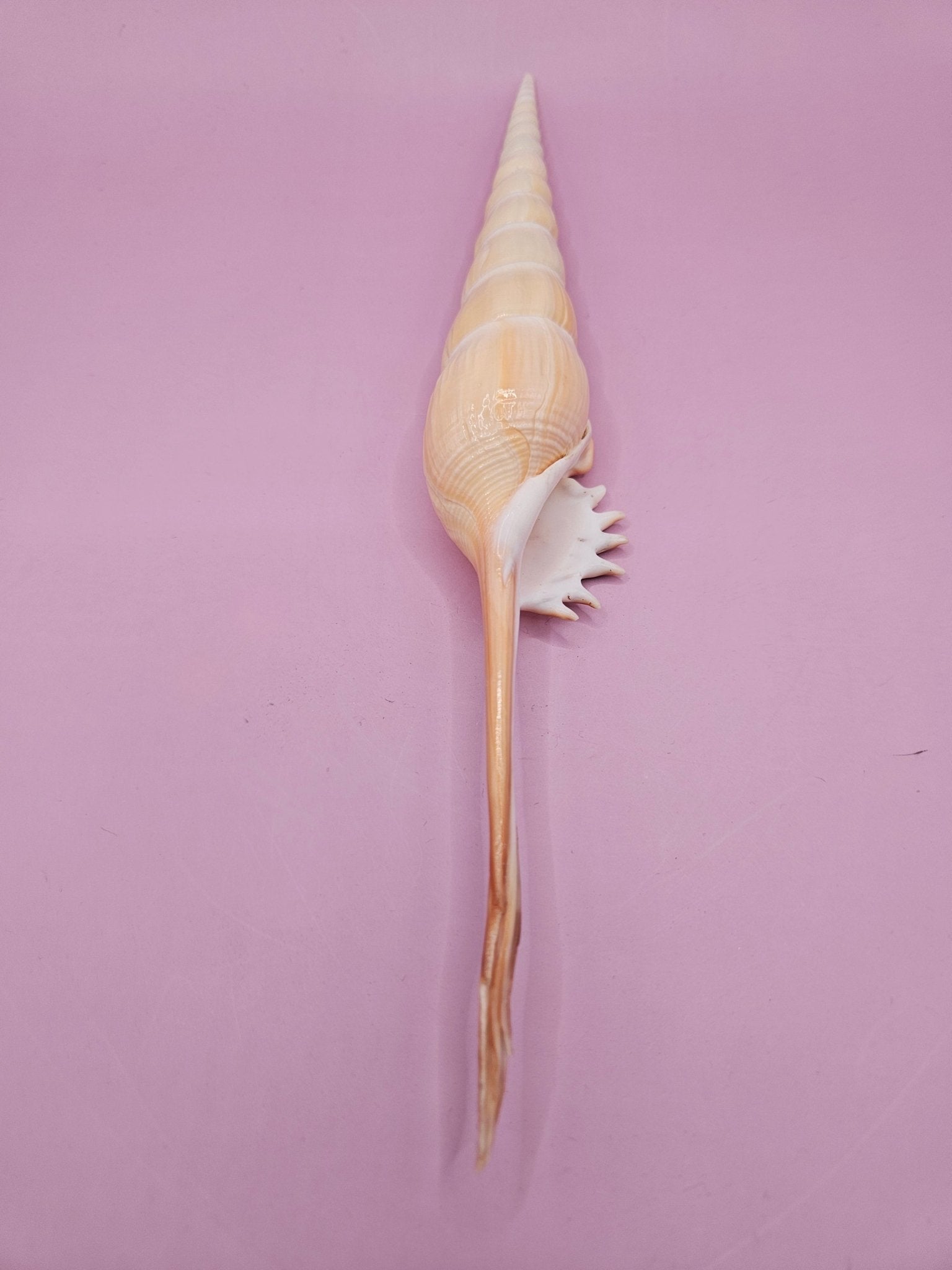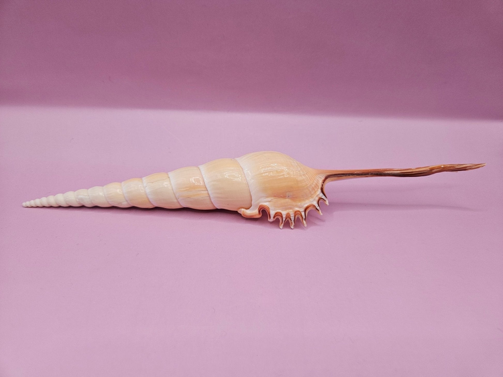 Add an extraordinary touch to your collection with this Shinbone Tibia Fusus Shell, a perfect specimen for avid collectors. Whether displayed in a Cabinet of Curiosities or under a cloche, this vintage shell exudes charm and historical significance. Sourced from our vintage stock, it is estimated to be from the 1970s-80s, making it a rare and unique find.