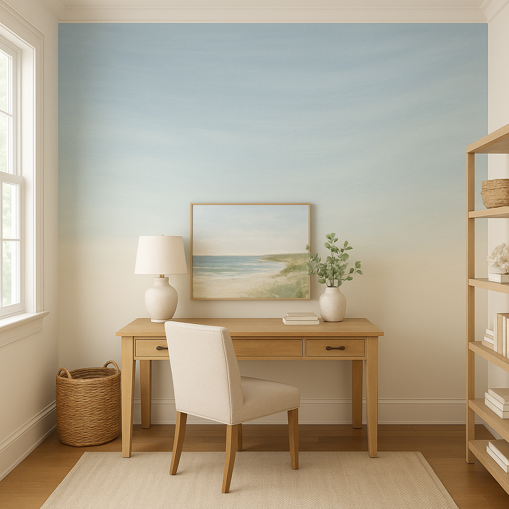 Silk Sky Wallpaper transforms walls with a delicate ombré of pale sky blue, soft lavender, and warm ivory, mimicking the gentle gradations of a sunrise or sunset. This serene design brings calm and sophistication to bedrooms, nurseries, or spa-inspired bathrooms. Ideal for customers searching for ombré wallpaper, modern pastel wallpaper, soft gradient wall coverings, or soothing modern wallpaper.