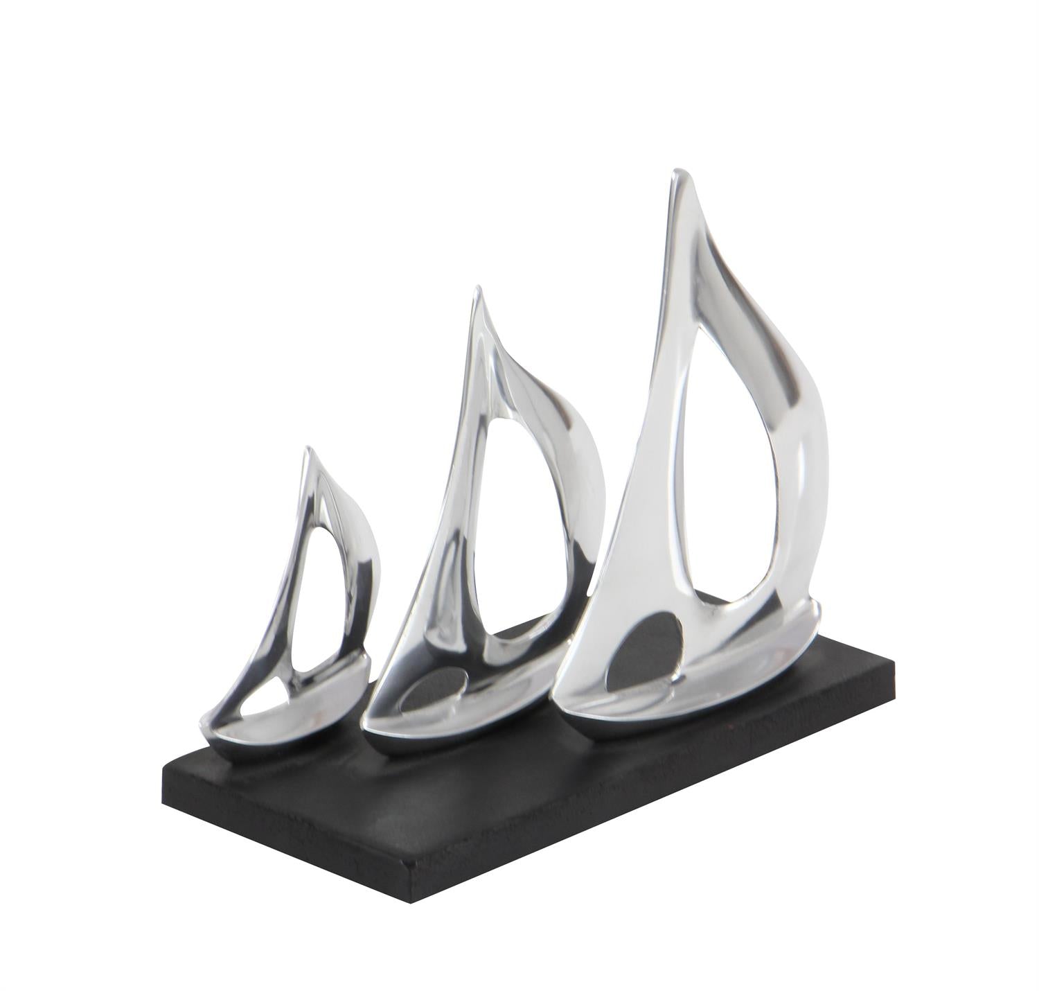 Add a coastal-inspired centerpiece to your decor with this sophisticated sailboat sculpture. Its sleek metallic finish and contemporary lines make it an eye-catching addition to any space.